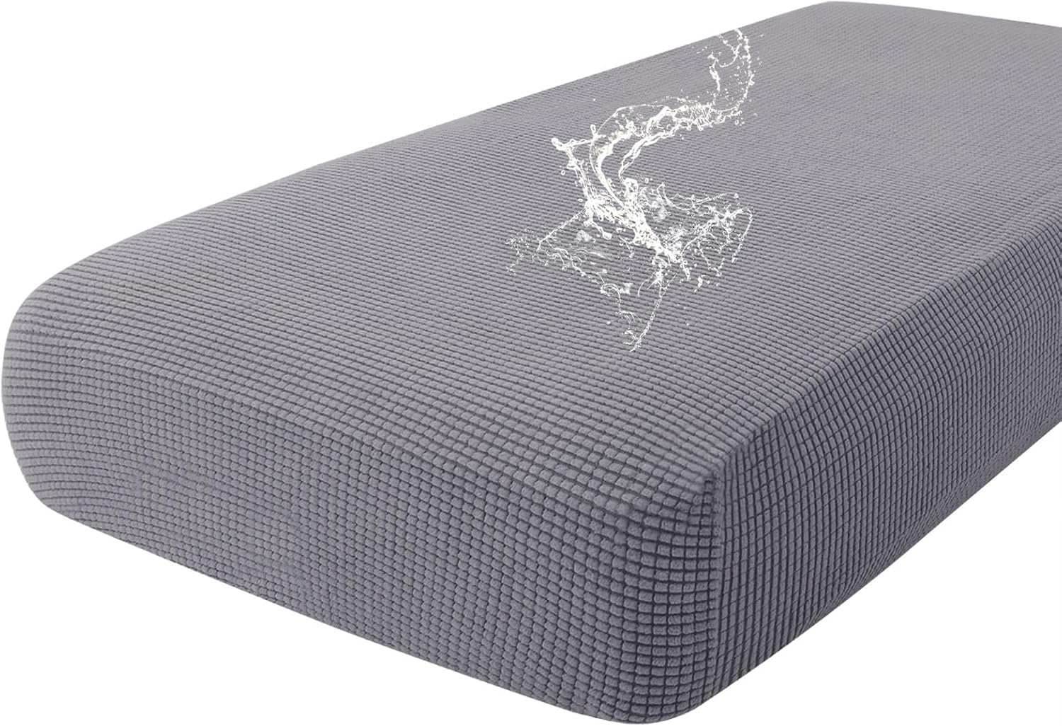 hyha Waterproof Couch Cushion Covers for Pets, Non Slip Sofa Seat Cover for Dogs Washable, Soft Thick Stretch Jacquard Fabric, Sofa Slipcovers with Elastic Bottom (1 Piece for Large, Middle Grey)