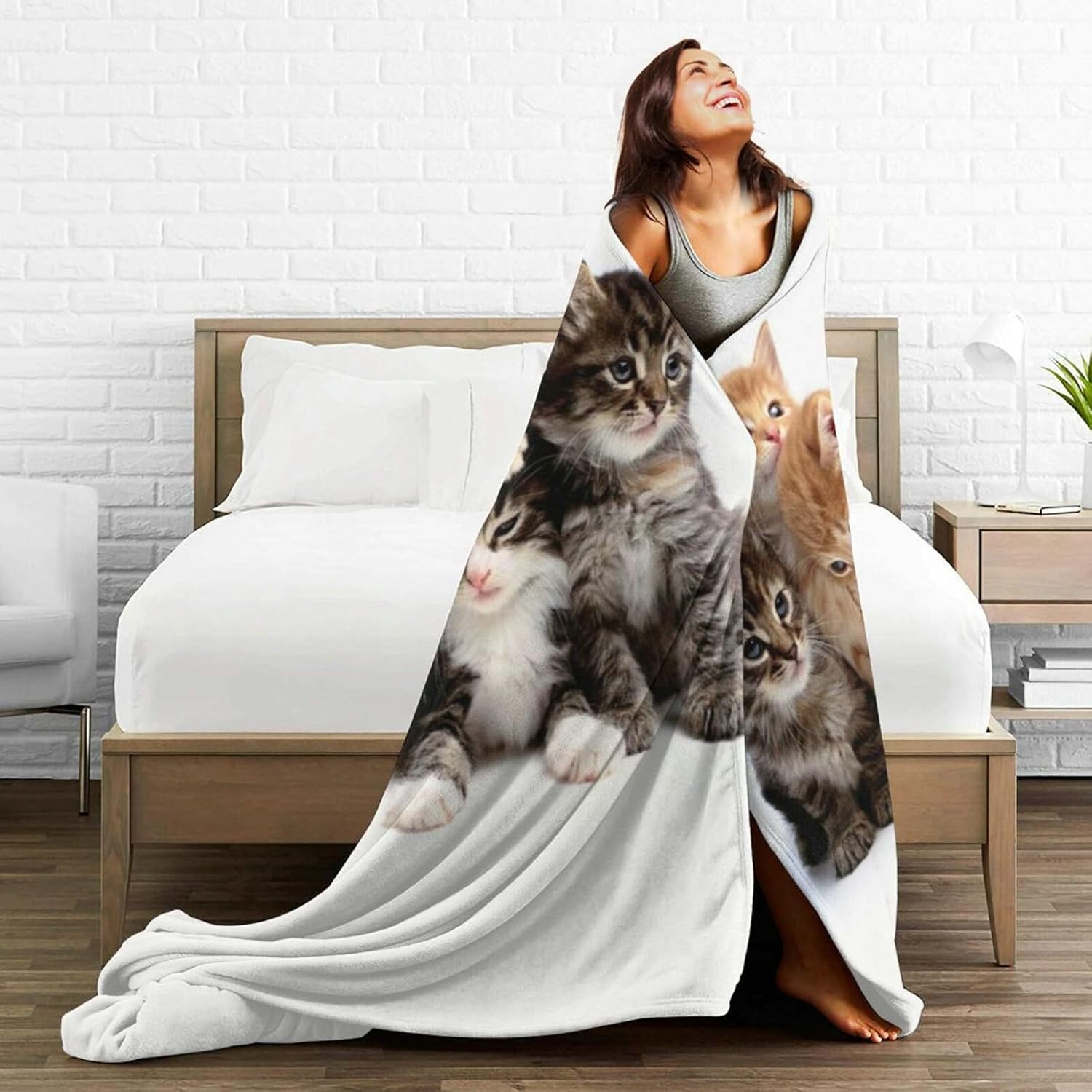 HGOD DESIGNS Cats Throw Blanket Ultra Soft Warm All Season Kittens Family Cats Decorative Fleece Blankets for Bed Chair Car Sofa Couch Bedroom 50"X60"