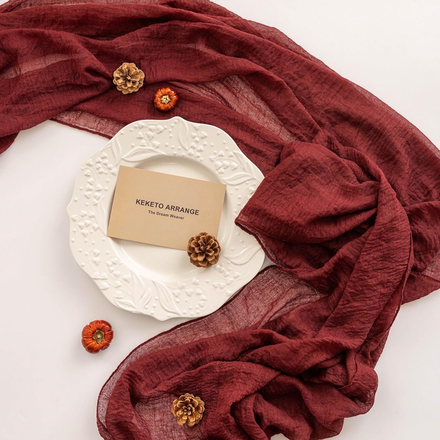- 【Package Includes】Package includes a long burgundy table runner measuring 35 x 120 inches (in flat condition) and 1 sisal rope (approximately 59 inches) . Everything is neatly packed in a transparent plastic bag. This versatile table runner is specifically designed to fit most types of tables.