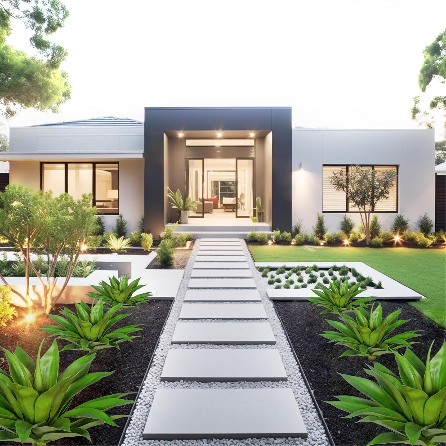 - About The Large Fake Plants Color: natural green, replica of the real agave color, delicate and durable, outdoor sun protection.Low Maintenance Unlike real plants, these artificial agave planters require no watering, pruning, or fertilizing. faux succulent outdoor plant enjoy the beauty of greenery without the hassle of maintenance.