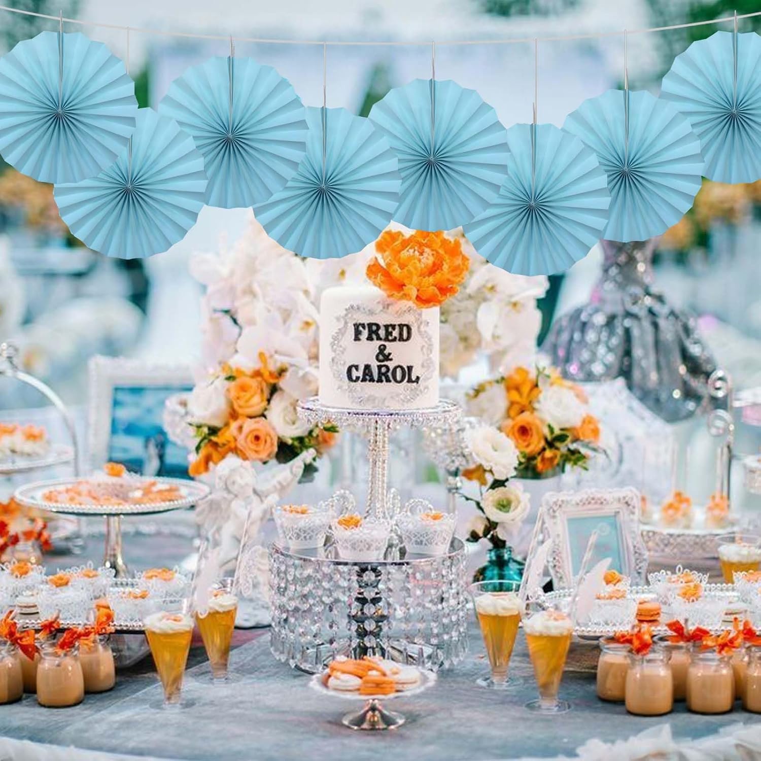Blue Graduation Party Decor,Baby Blue Party Decorations,Christmas Baby Shower Decorations,Under The Sea Decorations,Blue Bachelorette Party 12in Hanging Paper Fans 30 Color DIY Set (Light Blue)