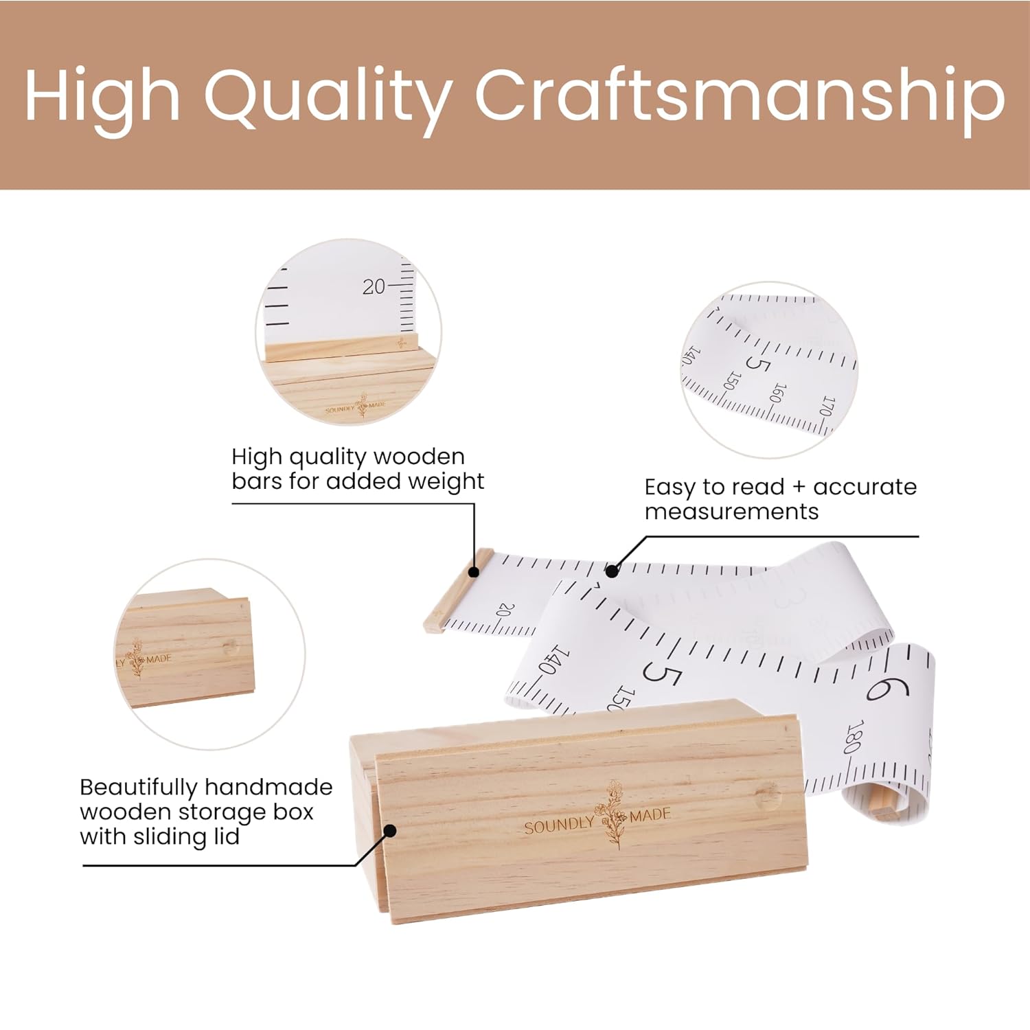Growth Chart for Wall | Kids Height Chart Canvas Ruler with Wooden Storage Box | Waterproof Measuring Chart | Nursery Decor & Baby Shower Gift