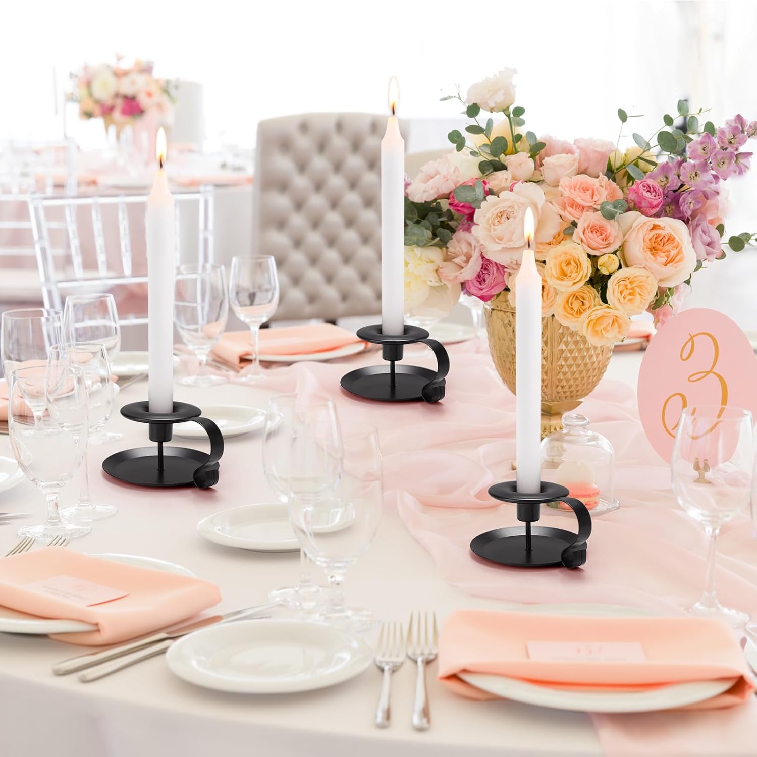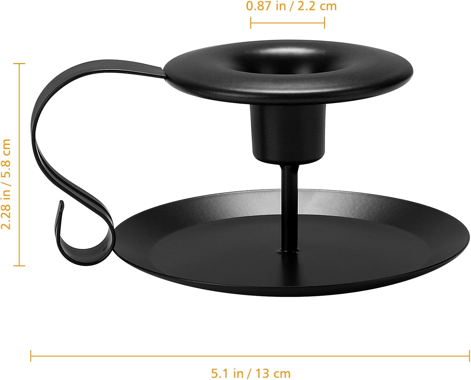 Black Metal Taper Candle Holders Set of 2, Vintage Chamberstick Candle Holder with Handle for Taper Candles, Farmhouse Rustic Candle Holders for Table Decor, Halloween Christmas Decoration