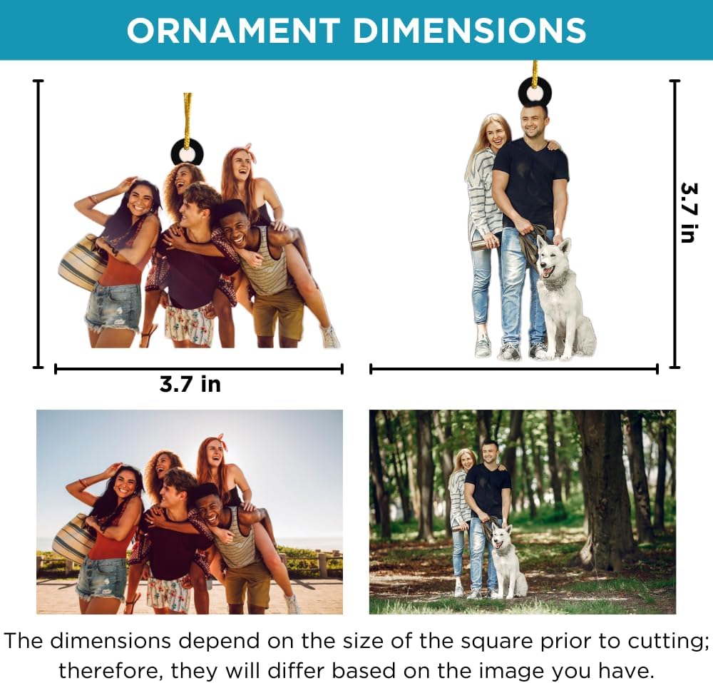 - ๐ Custom Ornaments With Pictures: Crafted with high-quality acrylic, this ornament features a height of 3.7 inches (~9.5 cm) and a slim 0.12" thickness, ensuring its durability and lightweight design. The ornament can be customized with your photo, which makes it a truly personal and cherished gift. We include a hanging gold cord loop to easily hang on your Christmas tree or an ornament stand.