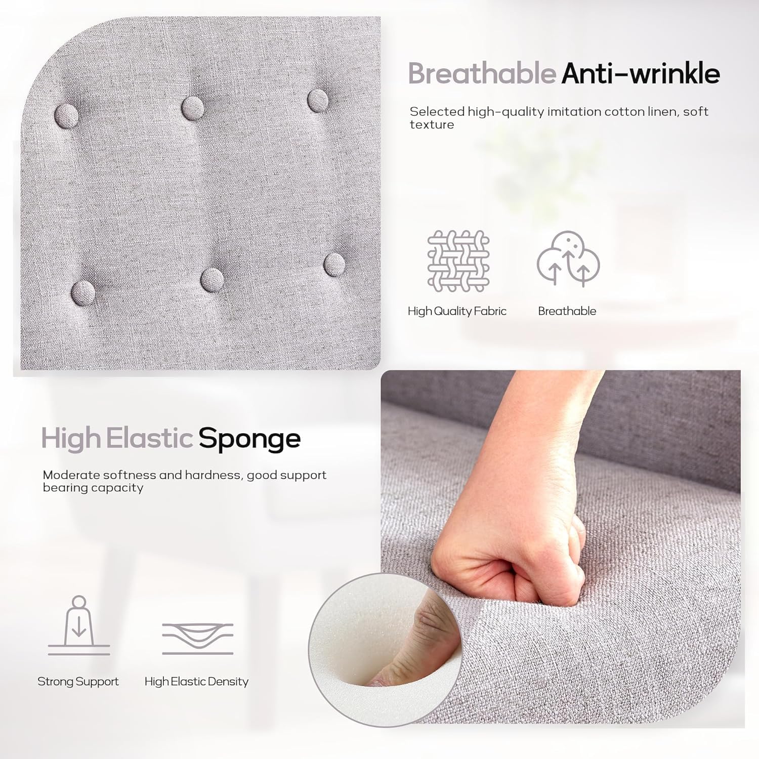 HUIMO Button-Tufted Accent Chairs Set of 2,Upholstered Reading Living Room Chair,Mid Century Modern Chair with Linen Fabric, Club Chair,Comfy Arm Chairs for Living Room,Bedroom,Light Grey