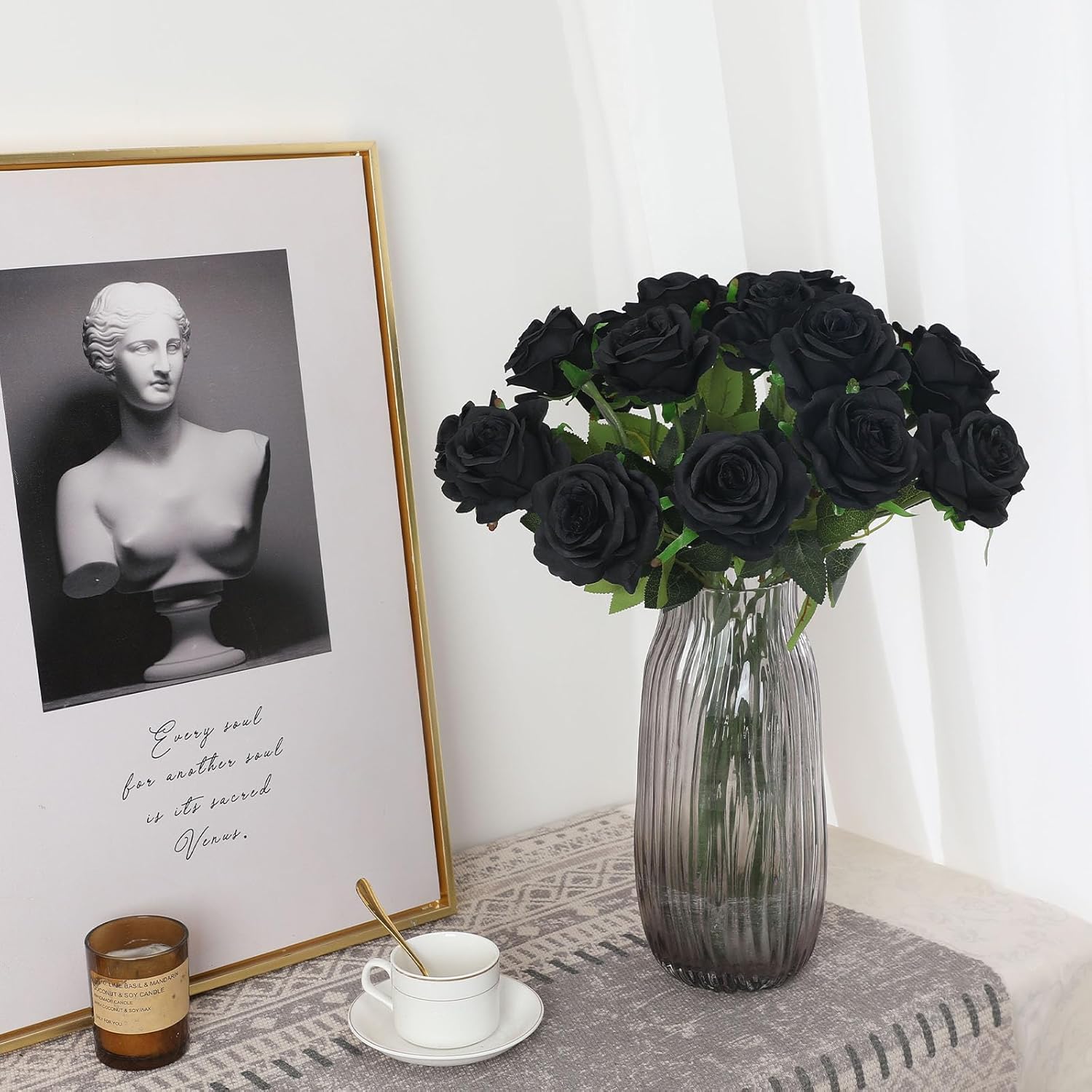 - What You Get:Package including 16pcs realistic fake black roses,total length 50 CM / 19.7 In,roses head are in full blooming,8 CM / 3.15 in in diameter