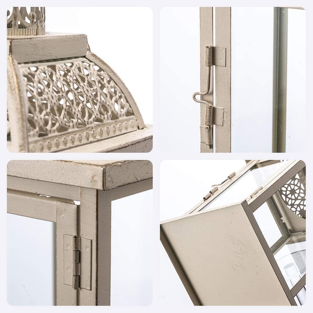 - EXOTIC CANDLE LANTERN DECOR - DECORKEY large vintage candle lanterns create an aura of old-world charm. Adds a gorgeous touch and romantic ambiance to any space with the white square metal lantern having intricate cutouts that allow the light to flood through and create unique patterns. Decorate your patio, courtyard table or front porch with this elegant lantern for a cosy, classic homely feel.