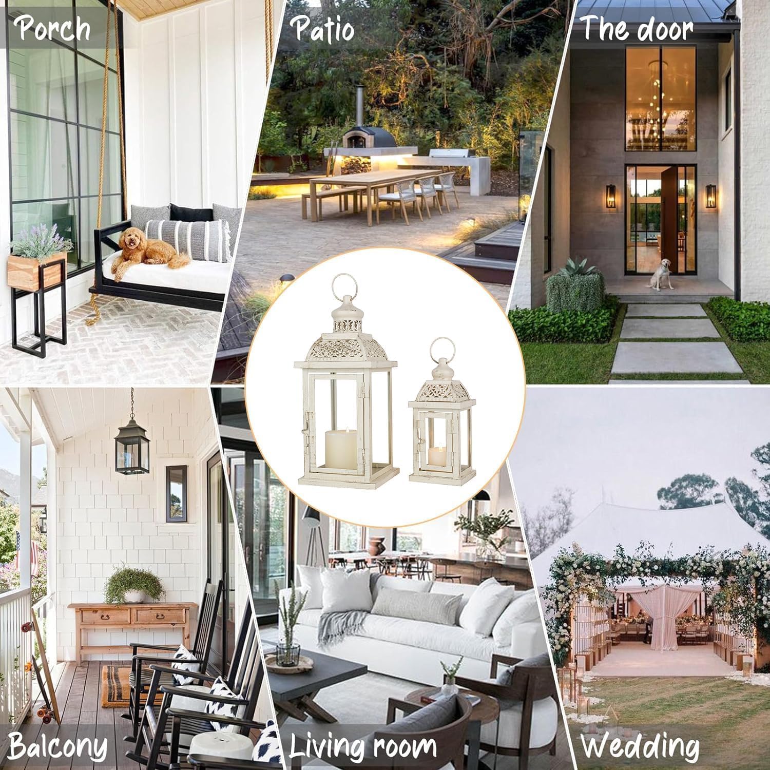 - LANTERNS DECORATIVE INDOOR&OUTDOOR - This charming lantern will suit both indoor & outdoor decor. You can decorate your front porch with this lantern, whether it looks great on a tabletop or on the porch step. Or place it on your doorway path to illuminate your path and entrance. Lanterns can be displayed indoors or outdoors under a covered area. Ideal as an indoor decoration too, use it to decorate your shelf, fireplace, windowsill, living room, or dinner party to add a warm touch to your home.