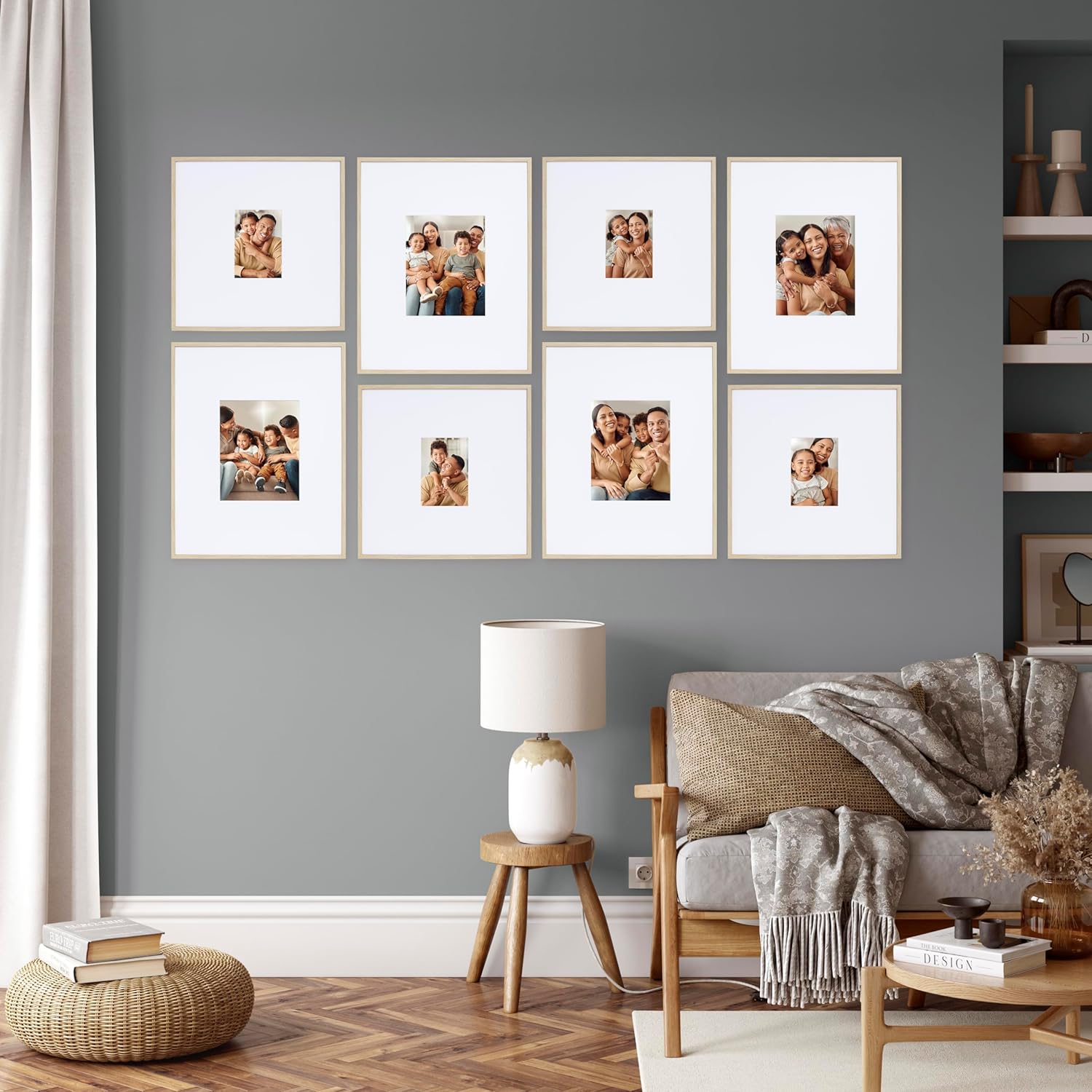 Camden Reed Arcadia 8 Piece Oversized Gallery Wall Frame, 16x20 and 16x16 Inch Matted Frames for Featuring 8x10 and 5x7 Inch Photographs or Art Prints, Natural Finish