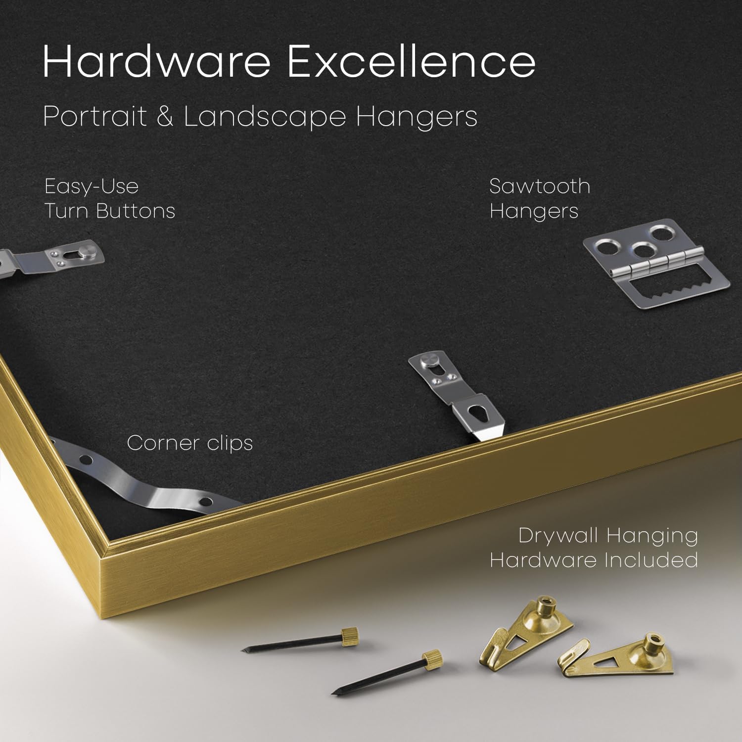 Homeforia 14x22 Picture Frame Gold, High End Metal 14x22 Poster Frames with Mat 12x16 Photo, 14 x 22 Gold Frames Matted to 12 by 16 Print, 22x14 Thin Hanging Frames, Tempered Glass, Wall Kit, Set of 1