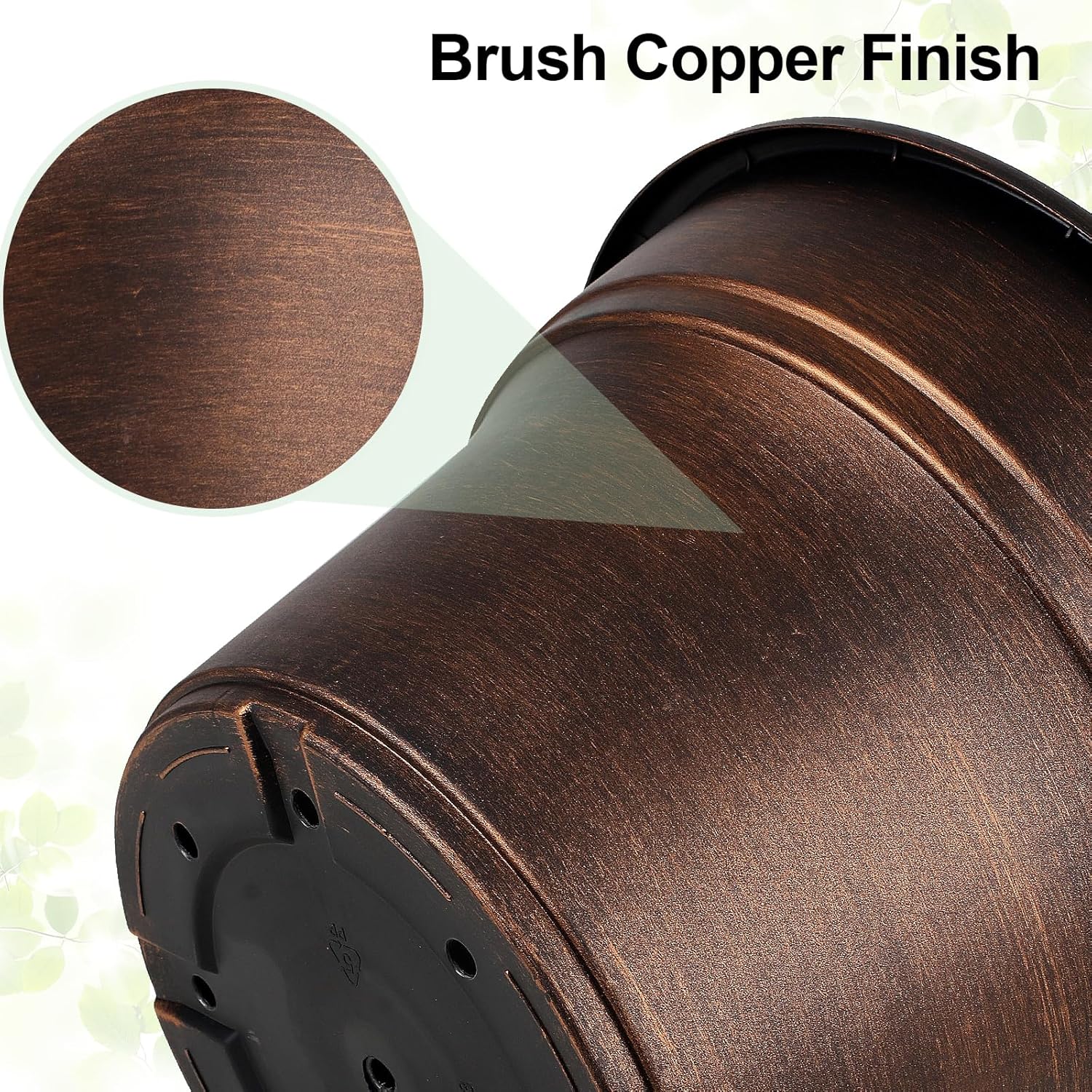 Plant Planters Pots Set of 4 Pack 13 Inch,Large Plastic Flower Pot for Indoor Plants with Drainage Holes & Trays, Resin Decorative Container Sets with Saucer for House Outdoor Garden Plant Copper
