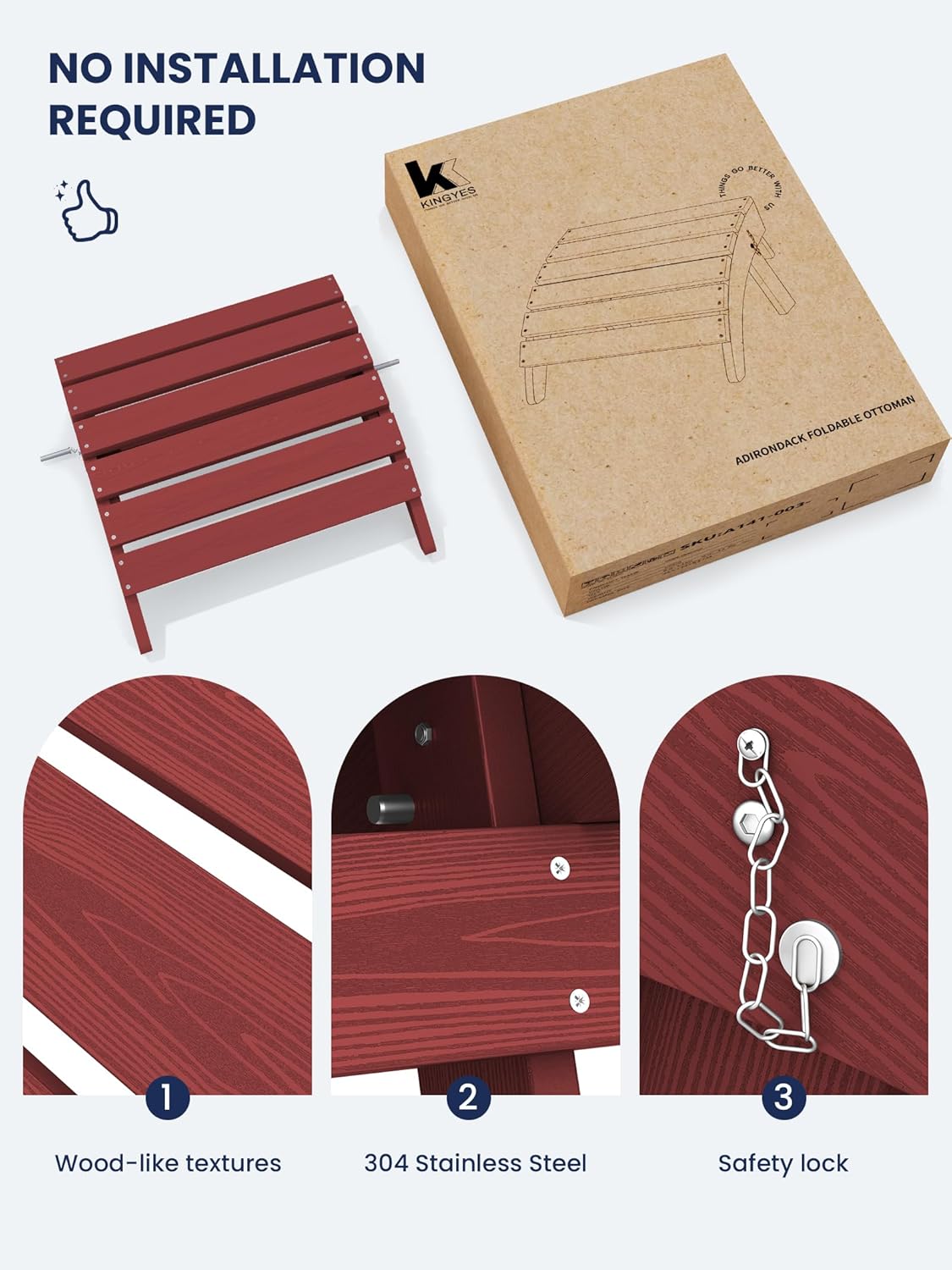 - [Instant Comfort]: No assembly required for the KINGYES Adirondack Footstool. Unbox and enjoy immediate relaxation with this portable and convenient footrest, designed for seamless integration into your outdoor living space.
