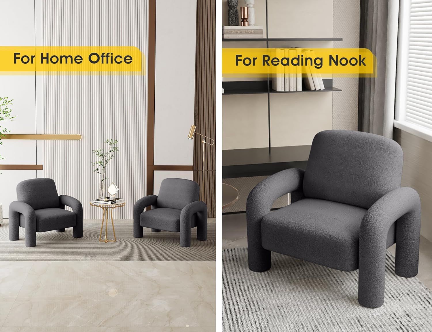 - [Unique & Stylish] This single sofa Modern casual and unique style fits perfectly with minimalist decor and furniture. Add warmth to the whole space, suitable for any living room, bedroom, office or corner and other various scenes. Whether it's a living room sofa chair, bedroom chair, club chair or lounge chair, multiple uses are available.