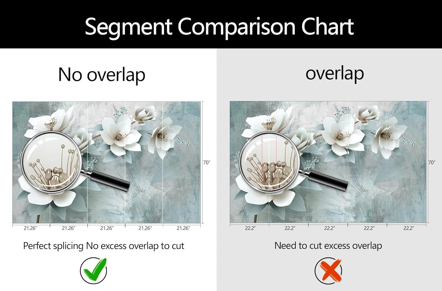 - Mural Size: The total size of this mural wallpaper is 106" x 70" / 270CM x 178CM (W x H), cut into 5 pieces, each measuring 21.26" x 70", for easy installation.
