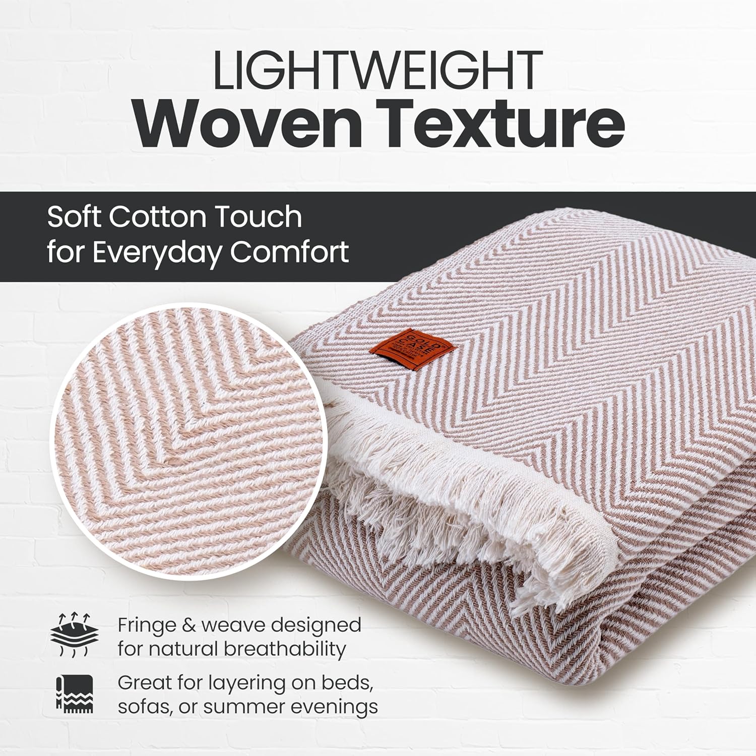 Gold Case Throw Blanket for Bed – 100% Recycled Turkish Cotton Bed Blanket – Decorative Throw Cotton Blankets for Living Room & Bedroom – Woven Twin Blankets - 71x90 - Elegant Beige