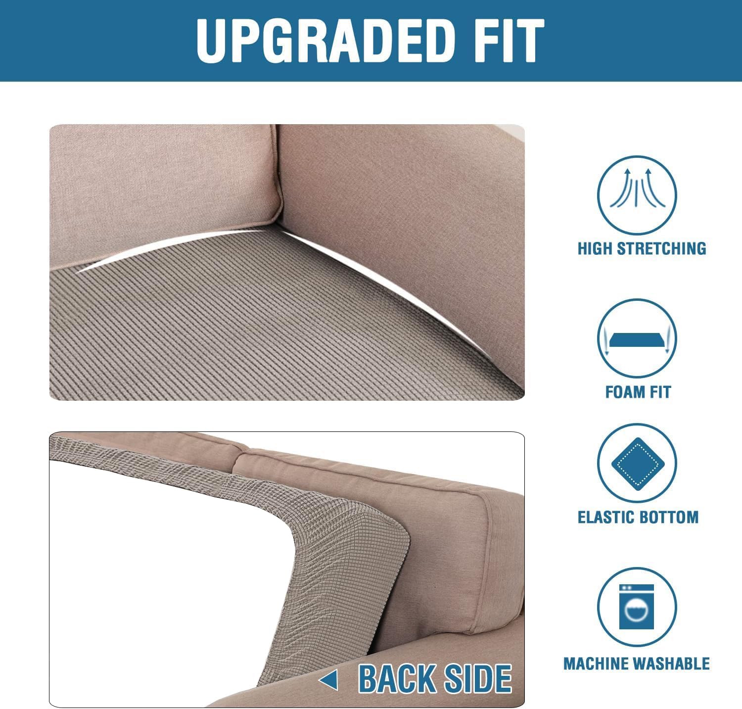 H.VERSAILTEX Super Stretch Individual Seat Cushion Covers Sofa Covers Couch Cushion Covers Slipcover Sets Thick Jacquard Textured Twill Fabric (1 Piece Chair Cushion Cover, Taupe)