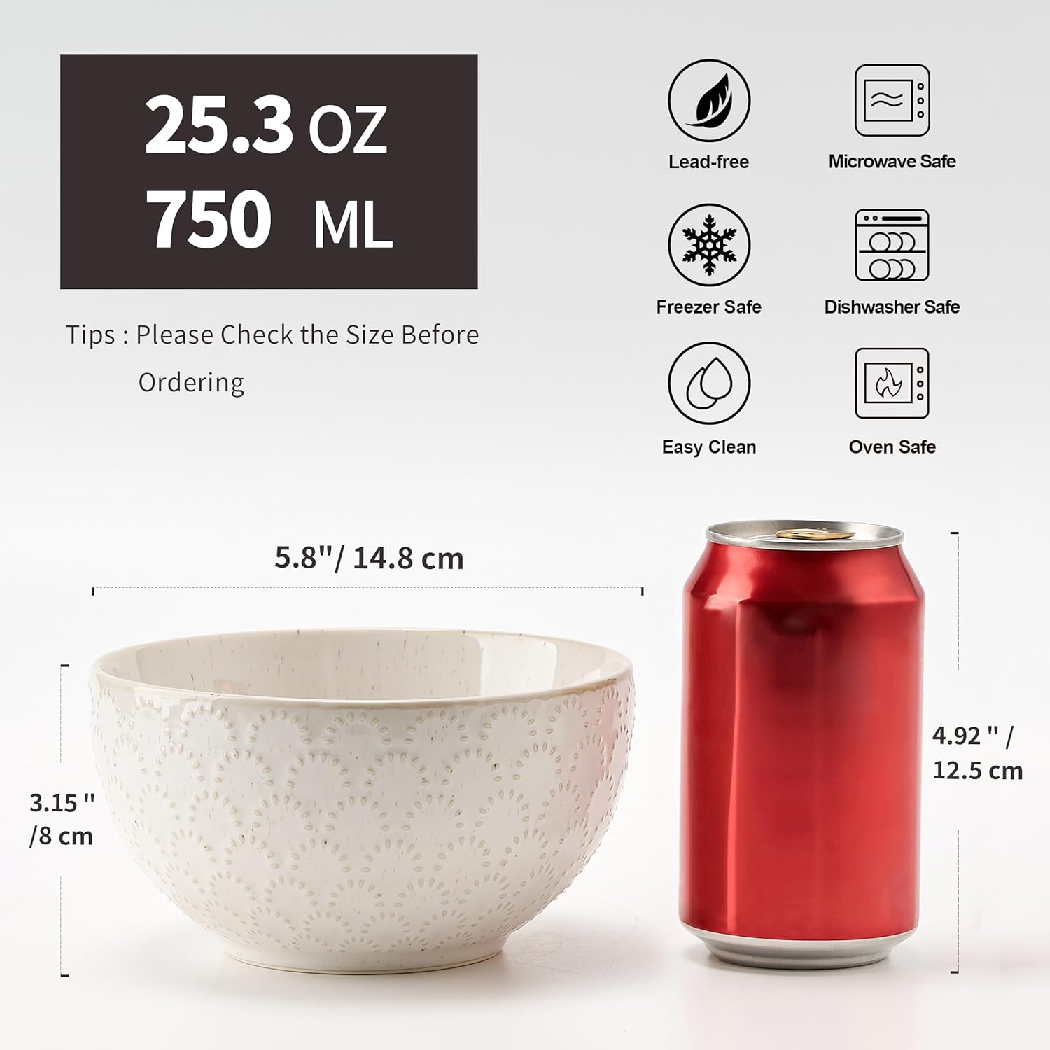 - [๐๐ข๐ญ๐๐ก๐๐ง ๐๐ฎ๐ฌ๐ญ ๐๐๐ฏ๐] The cereal bowls measure 5.8" wide and has a capacity of 25.3 fluid ounces, which is perfect for individuals eating alone. The ceramic bowl set can be used as a meal prep bowl, a dining bowl, or used for portioning at parties. This bowls set of 4 is sure to become a staple in your kitchen.