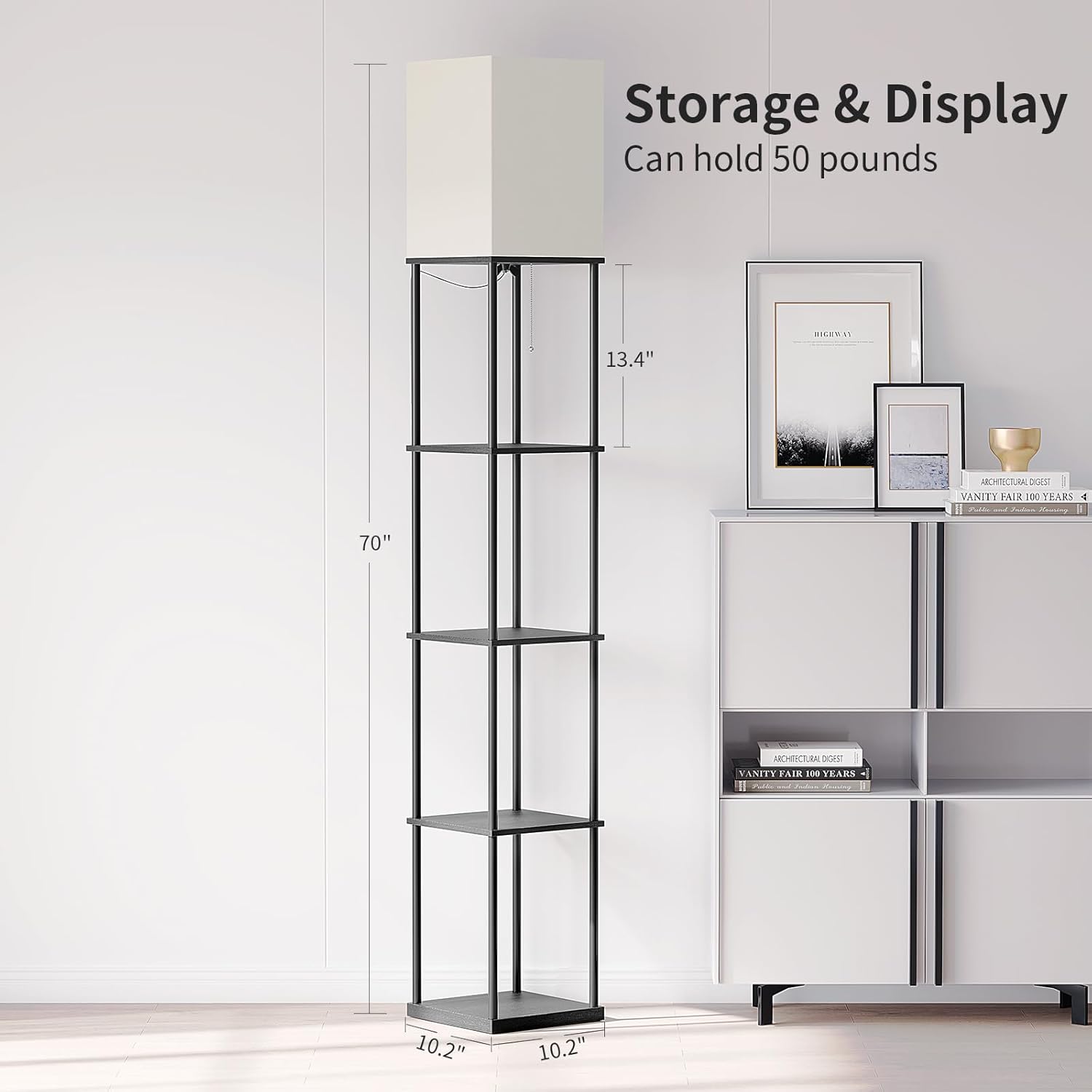 SUNMORY 5 Tier Floor Lamp with Shelves, Modern Square Standing Lamp with 3 Color Temperature Bulb, Corner Display Bookshelf Lamp for Living Room and Bedroom, Tall Shelf Floor Lamp