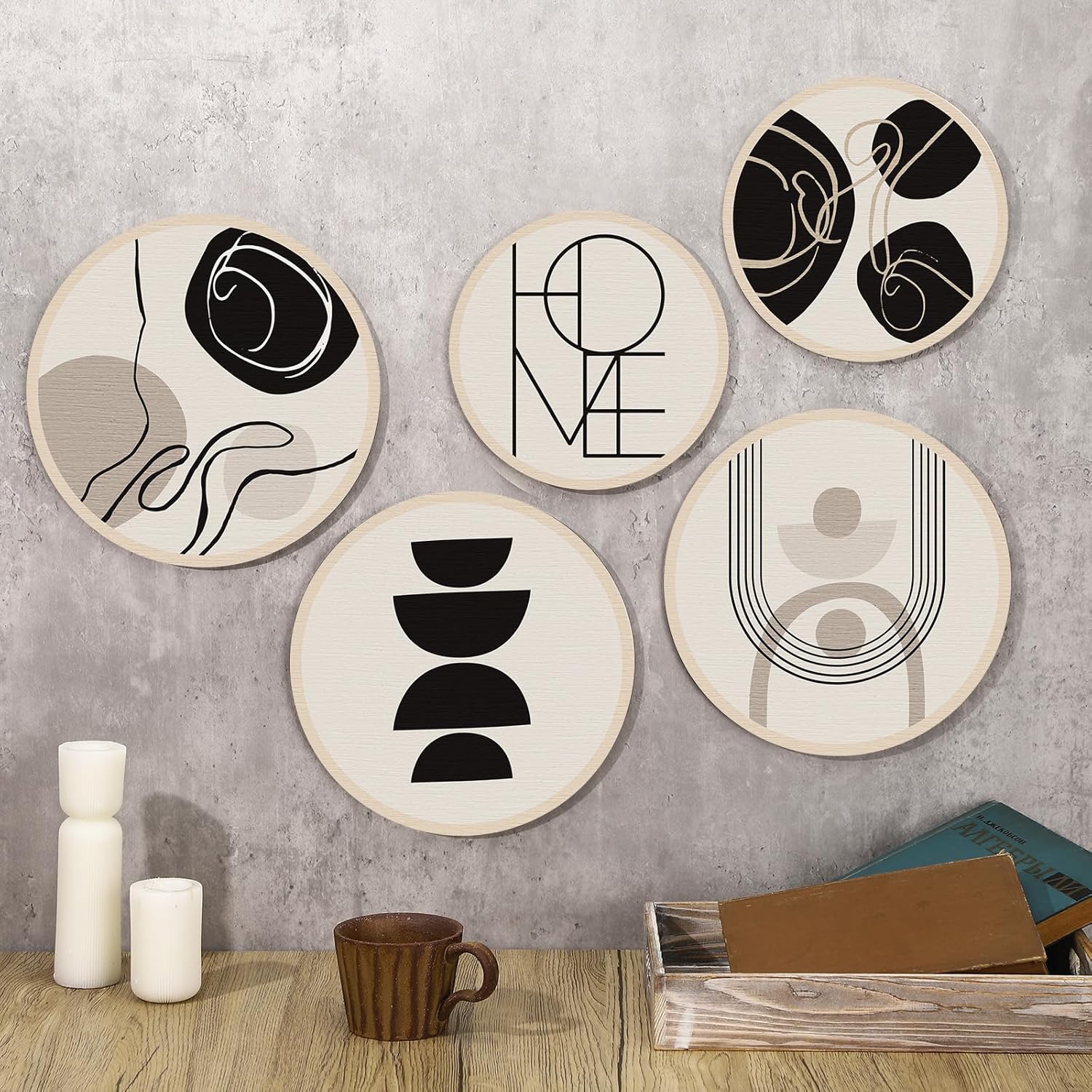 Qunclay 5 Pcs Wall Art Decor Wooden Living Room Wall Decor Bohemian Hanging Farmhouse Geometric 10'' and 8'' Aesthetic Wood Minimalist Posters for Bedroom(Classic)