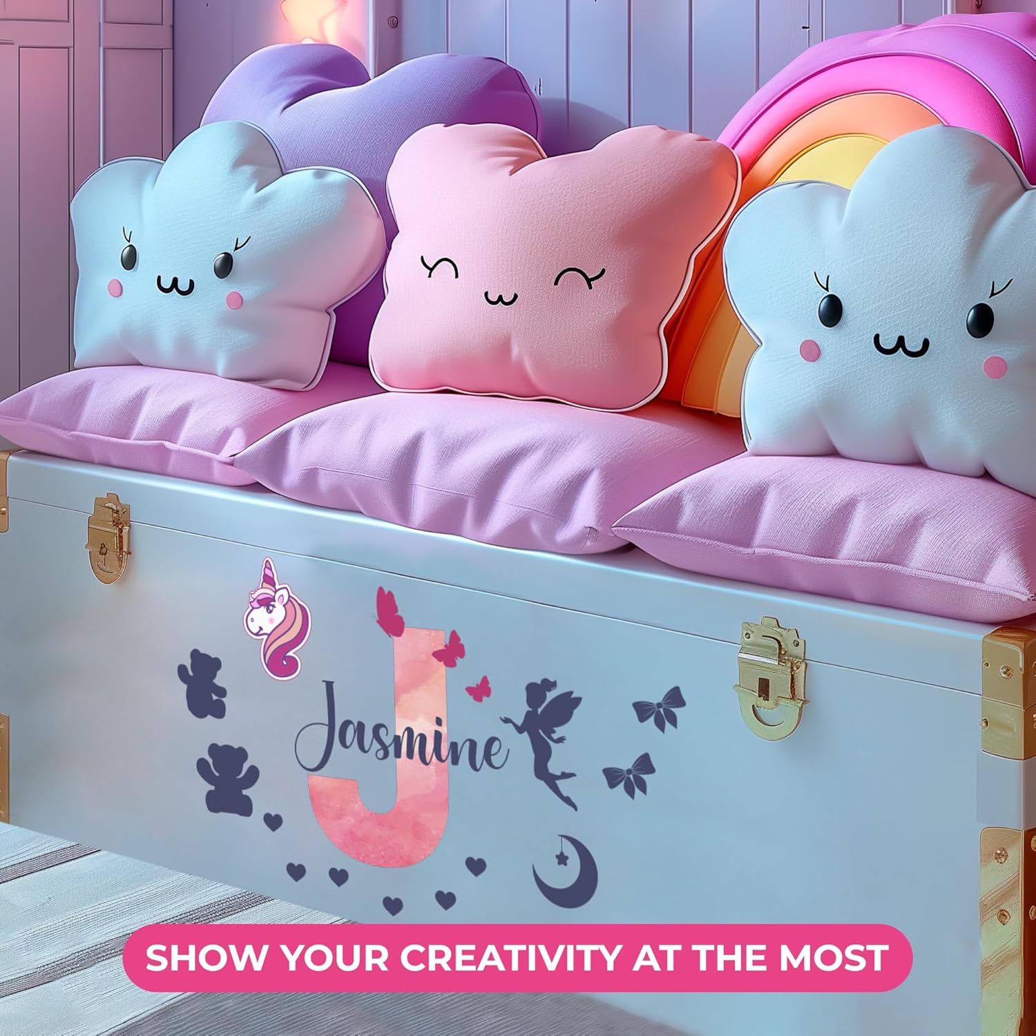 - 🔨 FULLY CUSTOMIZABLE WALL DECALS FOR GIRLS BEDROOM: Transform your child's space with a fully customizable name decal. Explore a spectrum of fonts, colors, and sizes to create a wall sticker that harmonizes seamlessly with the unique aesthetic of the room. This personalized touch elevates the overall ambiance of your girls' bedroom, ensuring a decor that is both stylish and distinctive. ATTENTION: THE ELEMENTS ARE NOT INCLUDED, YOU SHOULD ADD ON CUSTOMIZATION SECTION.