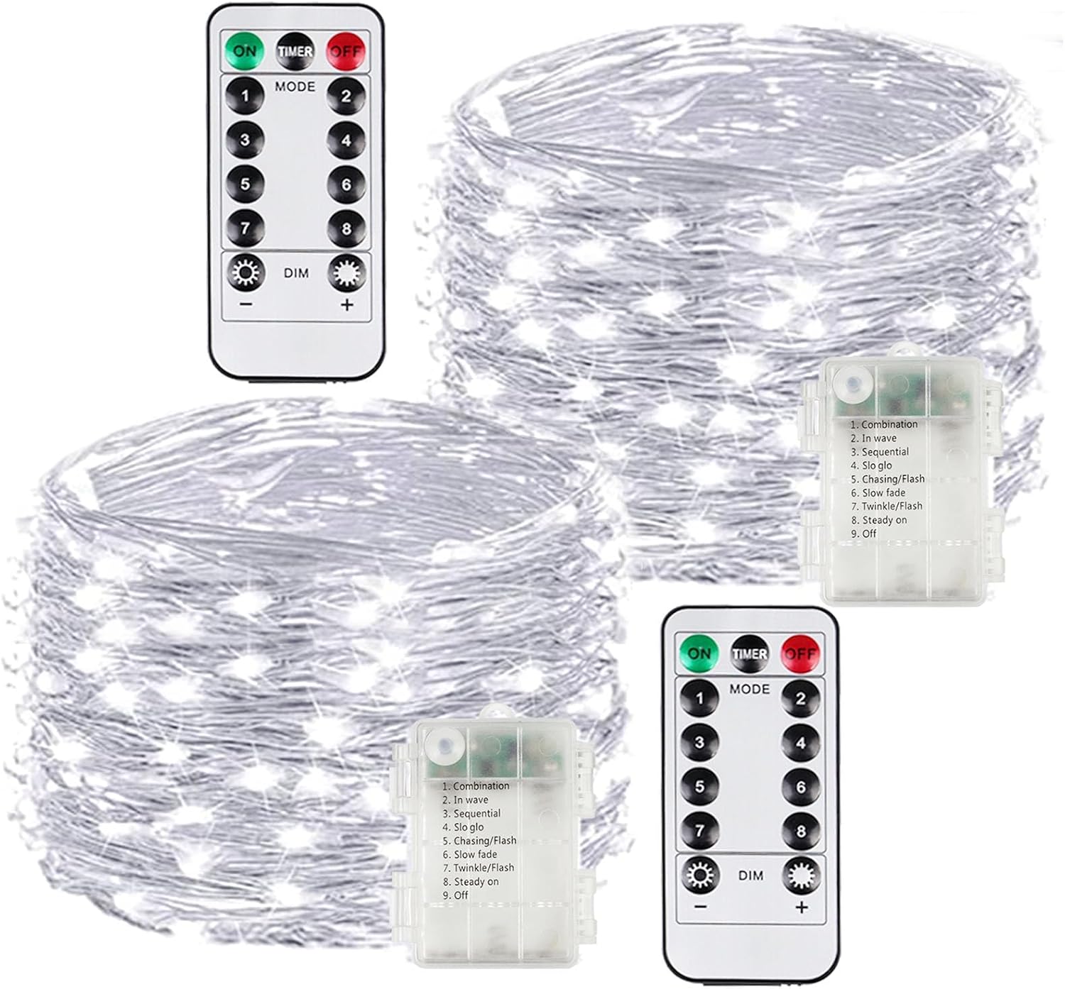 2 Pack 100LED Battery Operated Fairy Lights with Remote, 8 Modes LED String Lights with Timer, Dimmable, Memory Function, Waterproof Twinkle Lights for Outdoor Indoor Christmas Decor(Cool White)
