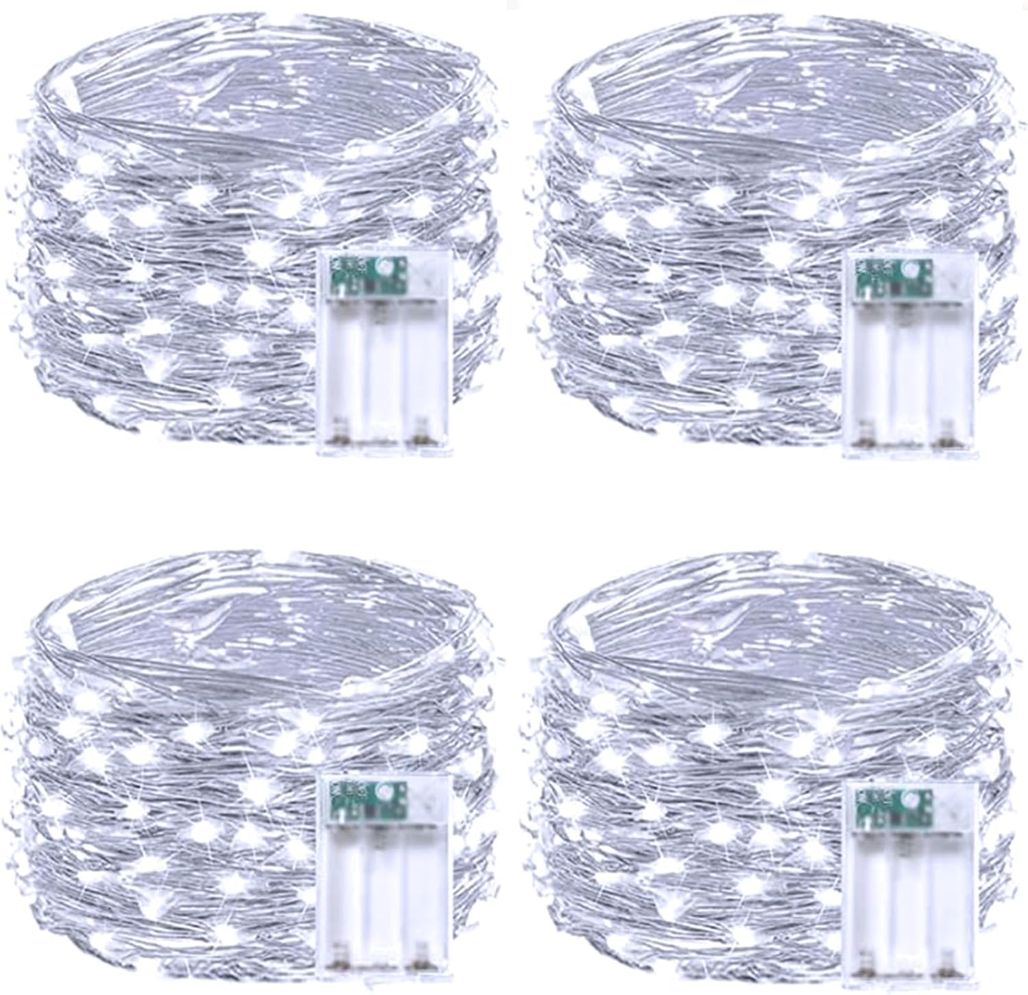 4 Pack Fairy Lights Battery Operated with Timer, Each 20FT 60LED Christmas String Lights Outdoor Indoor, Cuttable Battery Twinkle Lights for Bedroom Home Wedding DIY Christmas Decorations (Cool White)