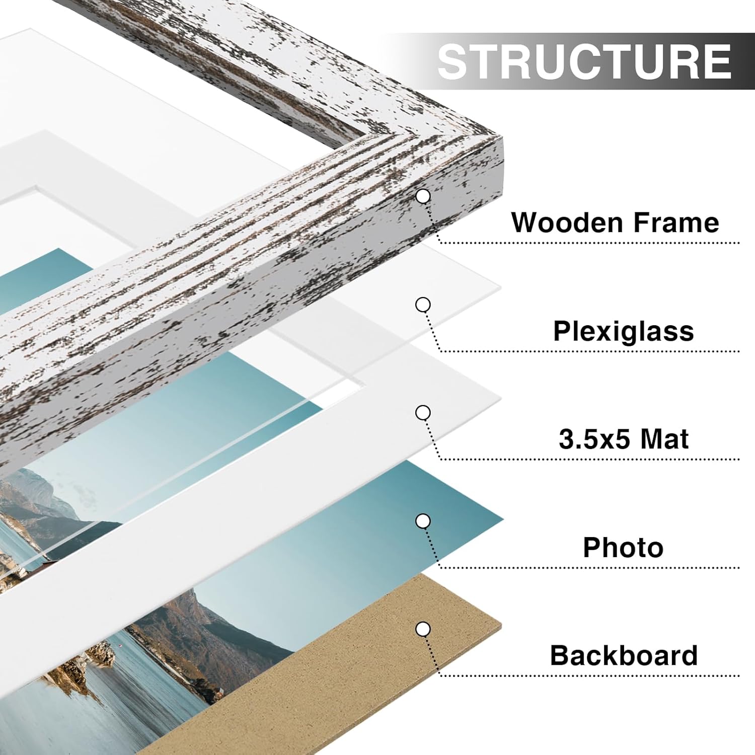 - Premium Materials: Made of sturdy composite wood material, our frames are lightweight and built to last. With a high-definition plexiglass front that resists breaking, simply remove the protective film before use to reveal crystal-clear clarity