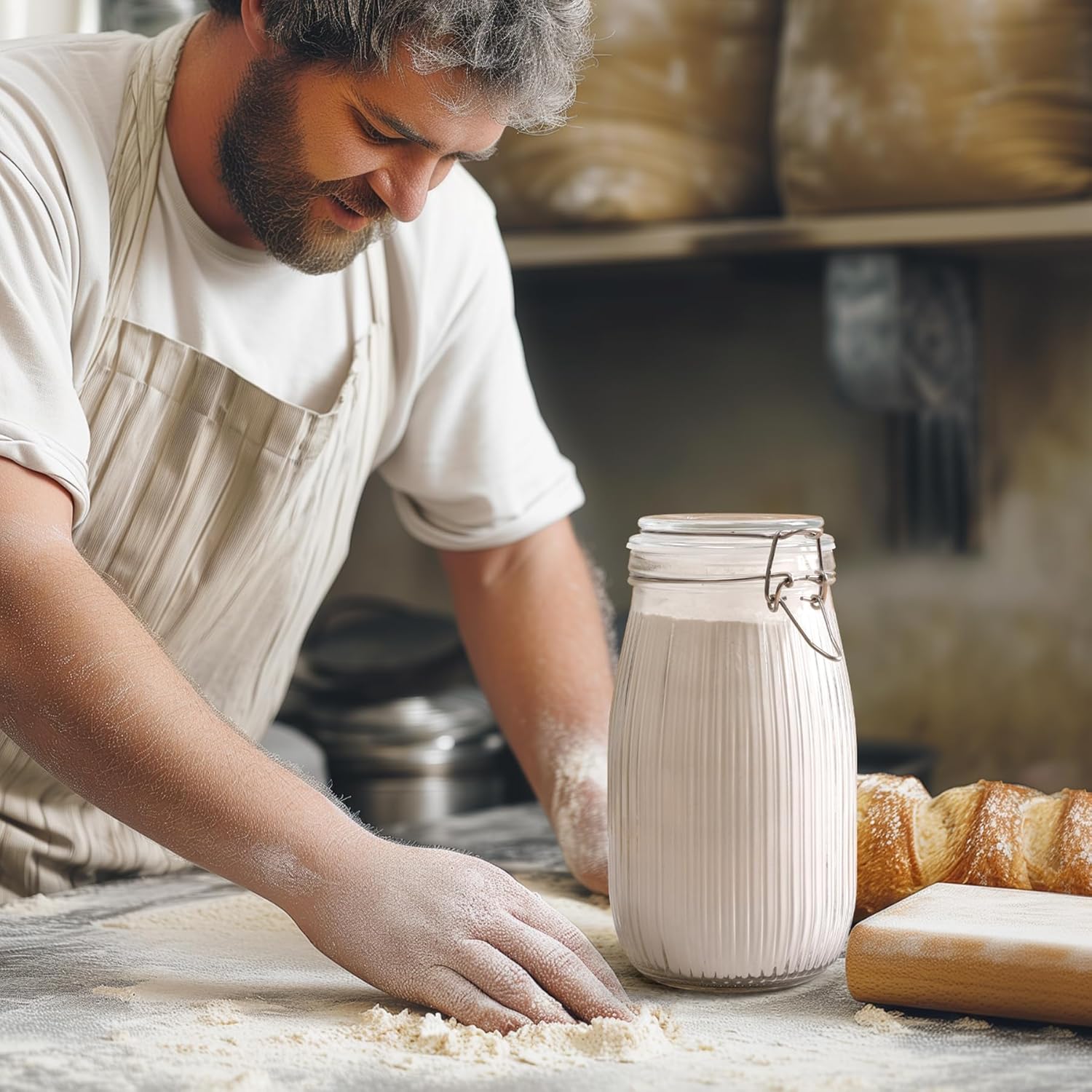- Versatile Glass Container: The flour sugar storage containers can be a pickling jars for home and kitchen; It is good to preserve various food like jams, chutneys, flour, cereal, sugar, spices, nuts, tea, dried beans and your favourite snacks like biscuits