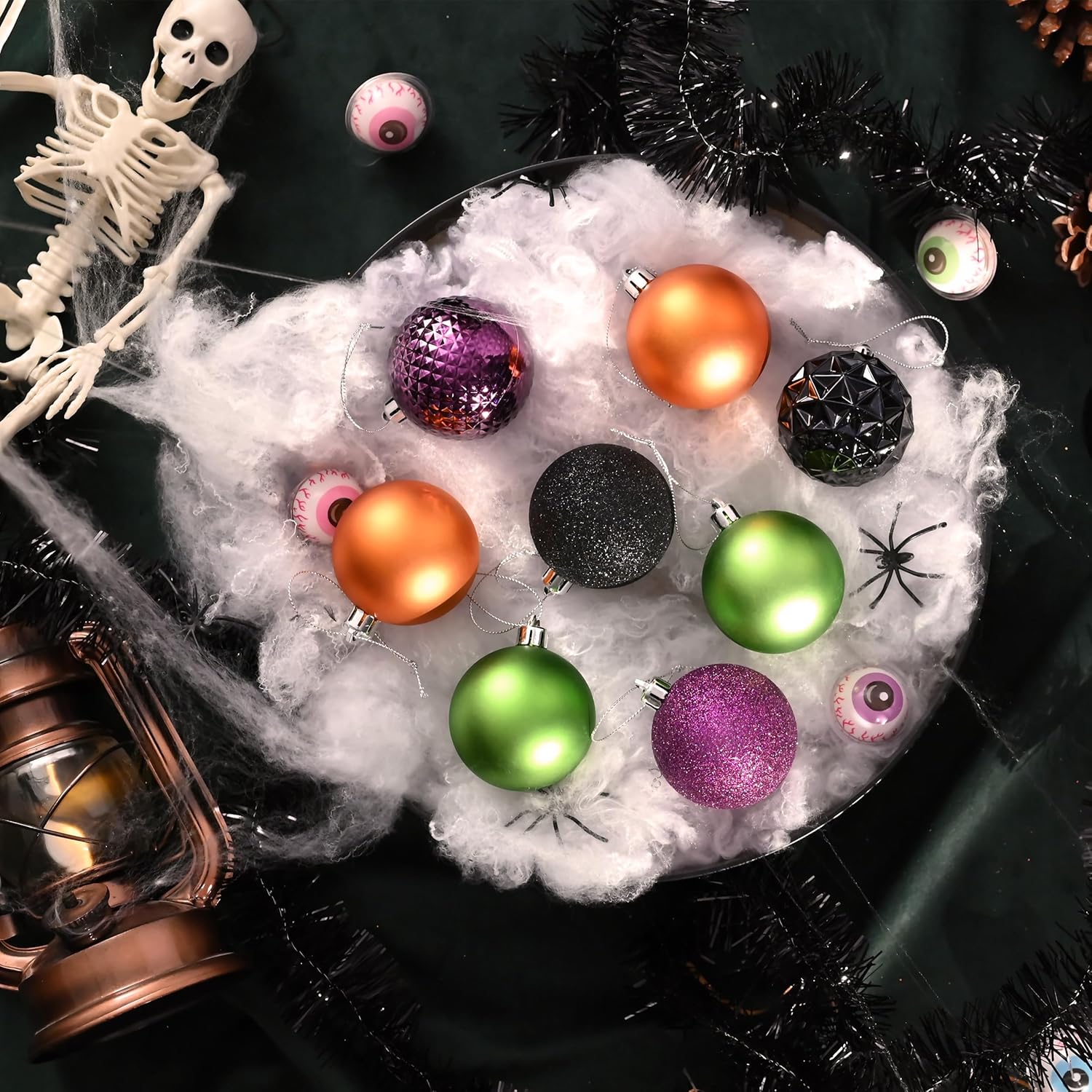 Valery Madelyn Christmas Tree Decorations Ornament Set for Fall Halloween, 50ct 2.36 Inches Orange Purple Black Shatterproof Christmas Ball Ornaments Hanging Xmas Holiday Party Decor