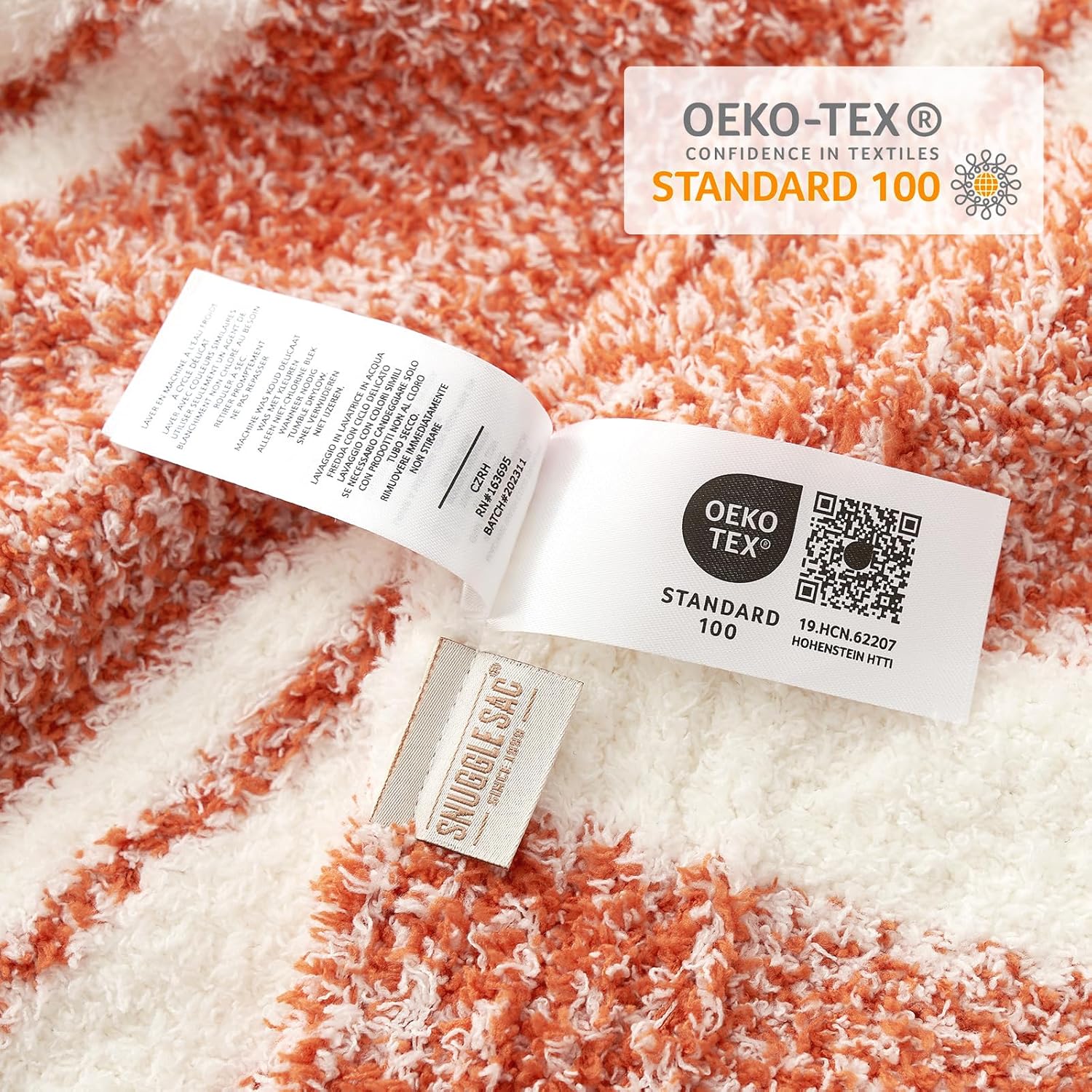 - Quality Material - The Snuggle Sac blanket is knitted with luxurious microfiber fabric, super soft, durable and warm, ideal for sofa, couch, bed, car and airplane when snuggling or relaxing. The blanket is certified with STANDARD 100 by OEKO-TEX,no harm to human beings or your fuzzy friends, ultra soft and permanently non-shedding, antistatic and breathable, giving you a cloud like feeling .