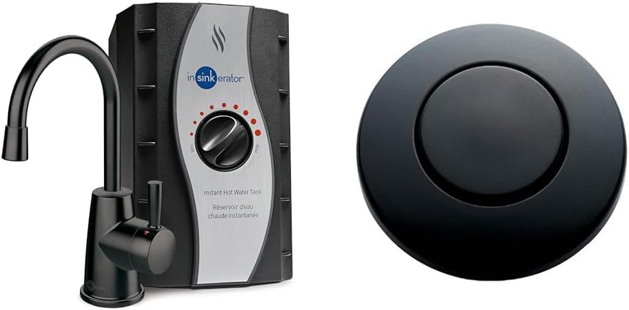 InSinkErator Stainless Steel Tank, H250MBLK-SS HOT250 System, Single-Handle Matte Black Faucet with 2/3-Gallon Instant Hot Water Dispenser & STC-MTBLK Push SinkTop Switch Button, Matte Black