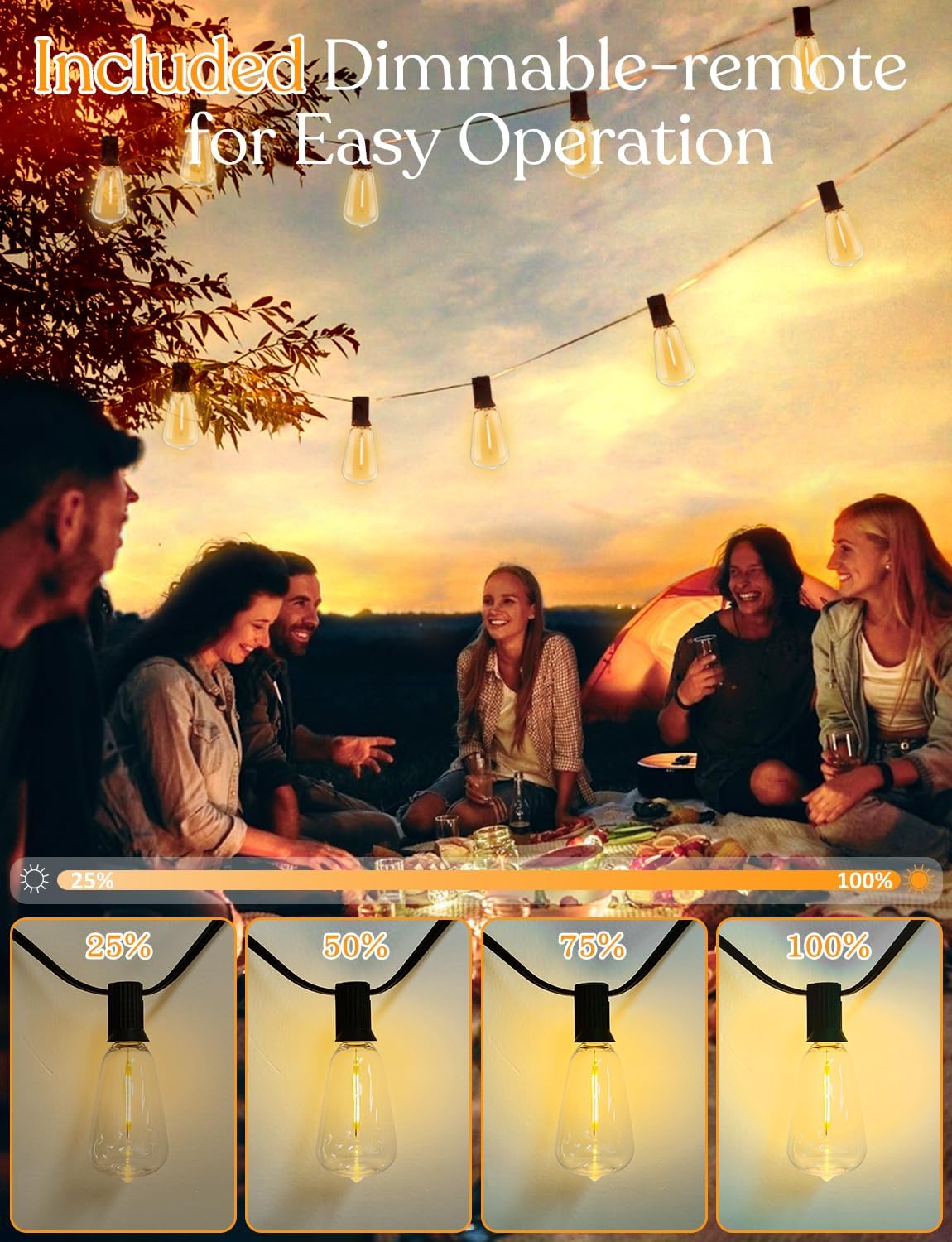- Vintage-style LED String Lights - Transform your outdoor space into a cozy and inviting haven with these vintage-style ST38 string lights. With 2,500K warm color technology, these bulbs emit a soft golden glow. Use the included dimmer and remote control for customizable lighting and create a wonderful ambiance for any occasion. Whether you're entertaining guests or enjoying a quiet evening outside, our outdoor string lights will transport you to a warm and inviting outdoor sanctuary.