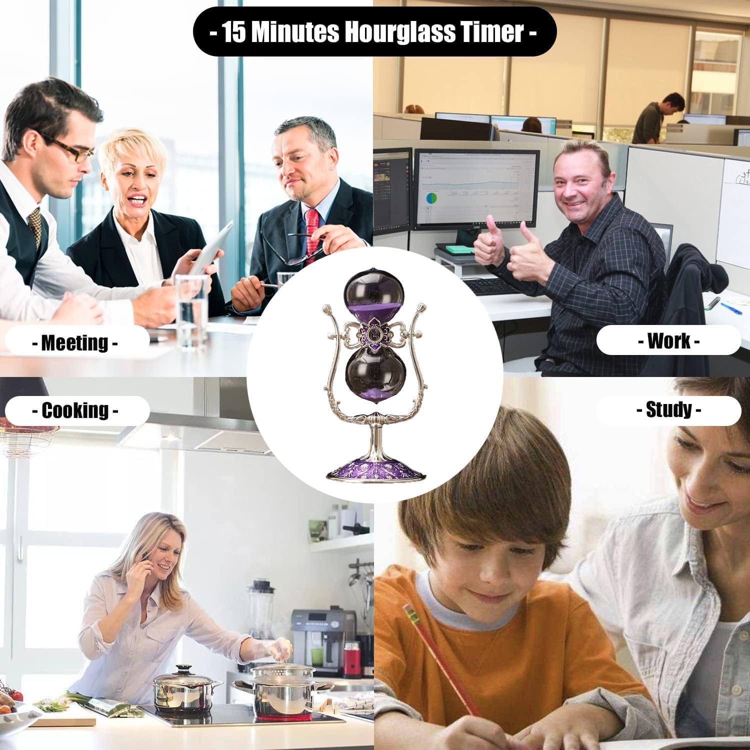 - ●[Gifts and Home Decoration] 15 Minute Sand Timer is designed in a classic vintage style, the hourglass timer is perfect for kitchen, office, study room decorations, hourglass timer is also a meaningful gift for your family and friends, it's perfect for your favorite metal hourglass timer collectors! Metal sand timer lovers as a gift, it must be very surprised and loved to receive it.
