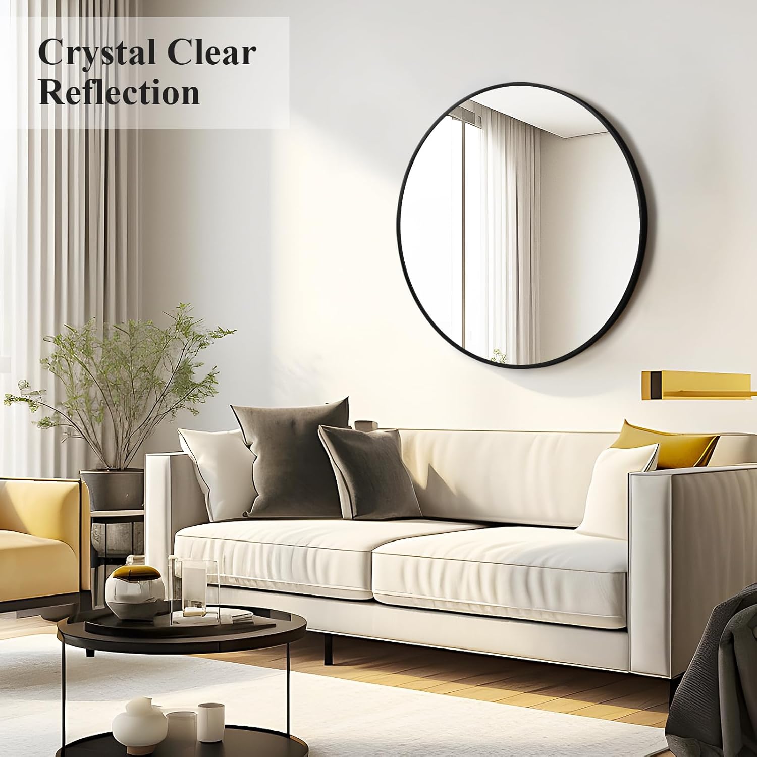- Crystal Clear Reflection - Fabuday round wall mirror is made of high-definition glass, smooth and flat mirror with high reflectivity, providing clear and real images without any distortion. Besides, the reflection makes the room look bigger and brighter, that is nice and can elevate the space