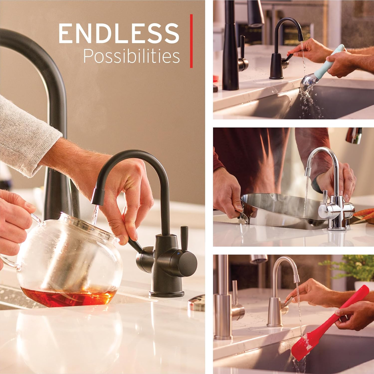 - Product 1: ON-DEMAND, NEAR-BOILING WATER: Instant hot water (approximately 200 degrees F) right next to the main kitchen faucet when you need it, for cooking, cleaning, and more; a time, space, and energy saver that lets you get on with more important things in life