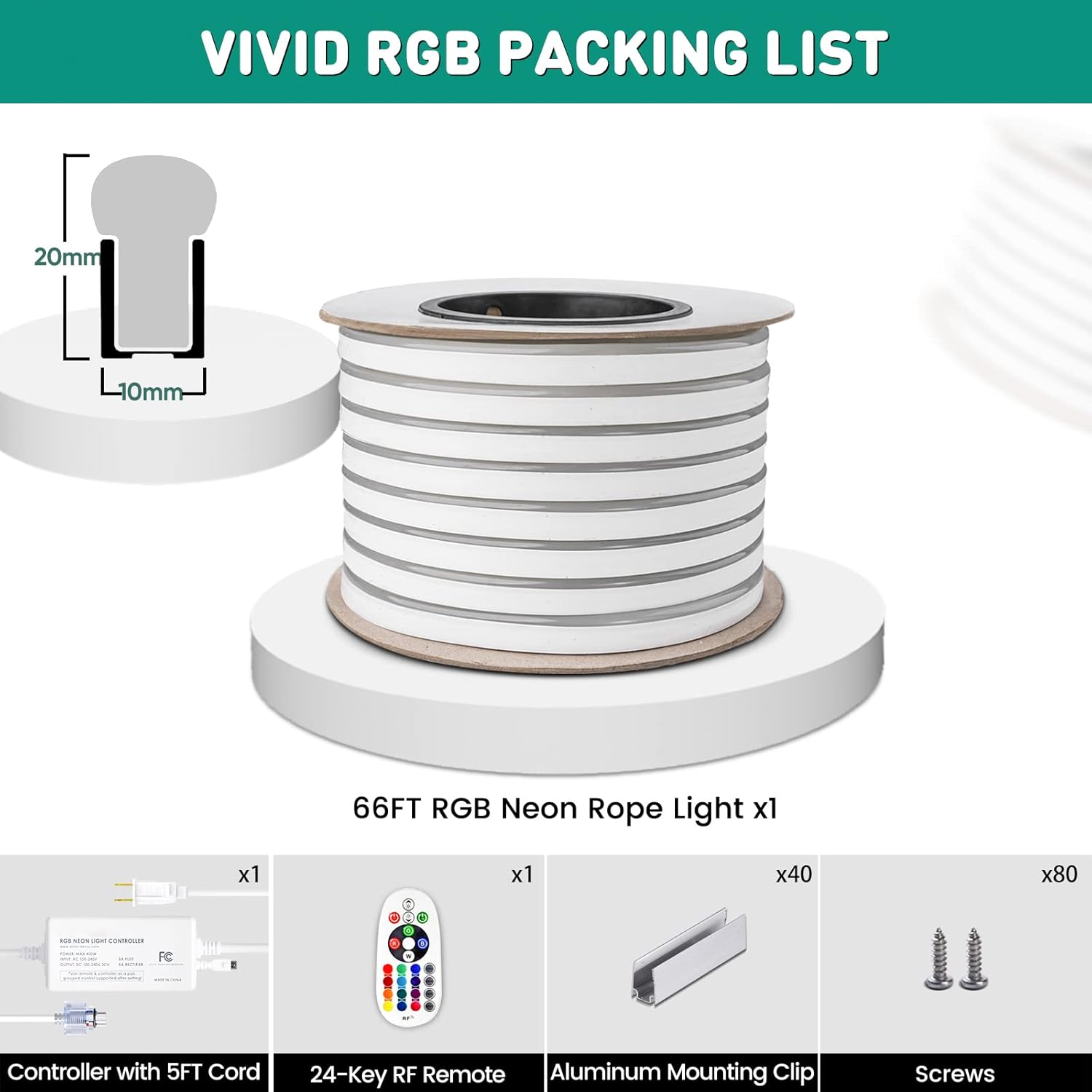 - Remote Sync & Command--Control up to 4 neon ropes with one remote! Effortlessly pair multiple strips for perfectly synchronized colors, effects, and brightness—ideal for large-scale setups. The 24-key RF remote controls 16 static colors, speed, and 4 dynamic modes within a range of 66 ft. NOTE: This is NOT color chasing Light.
