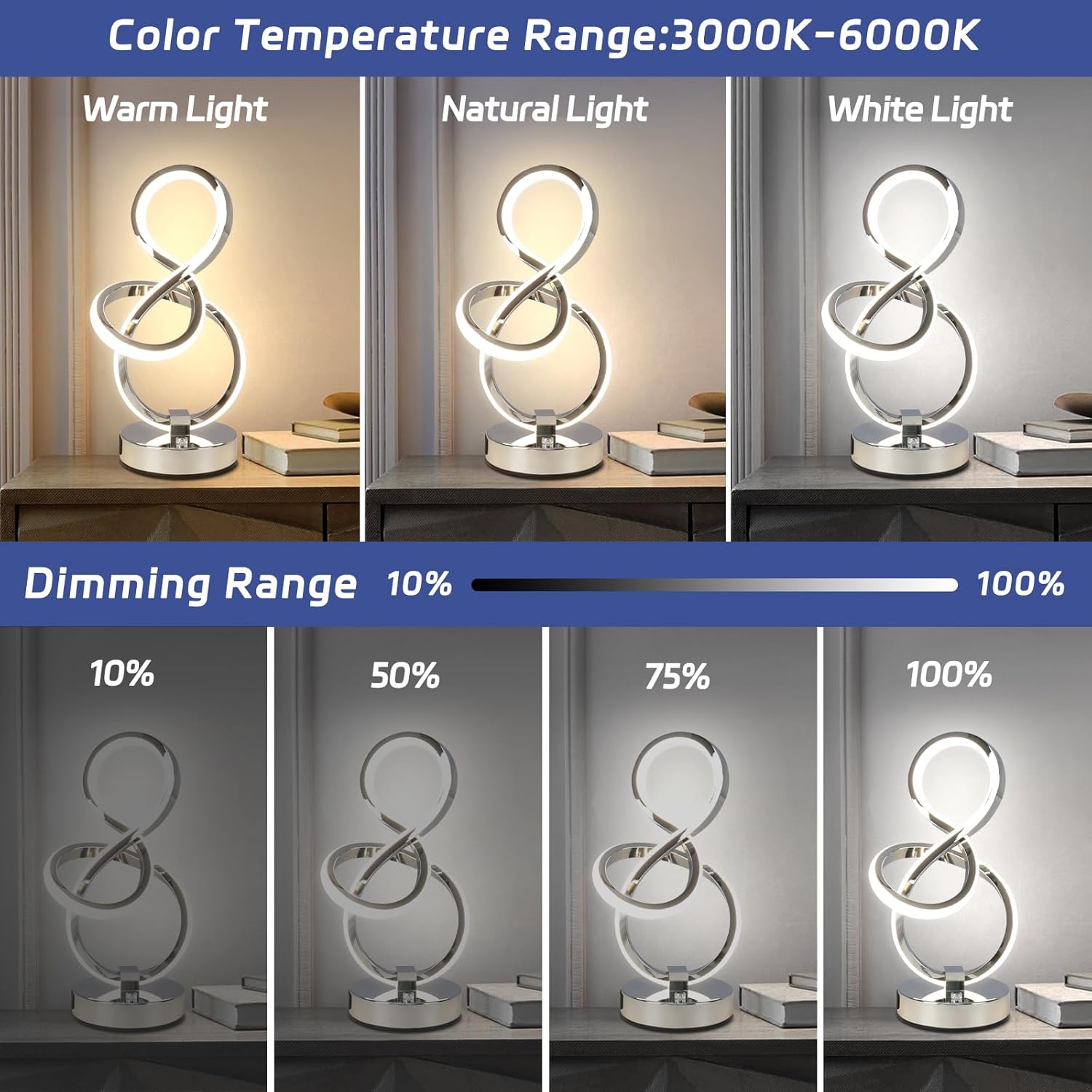 - 【Modern Table Lamp Color Temperature 】- Color: Silver ,Lighting Source: built in 28W LED chips (included), no need to buy bulb.The streamline model can weaken the direct emission of light and high-quality SMD 2835 LEDs don't produce stroboscopic, which won't fatigue your eyes even after long hours of using