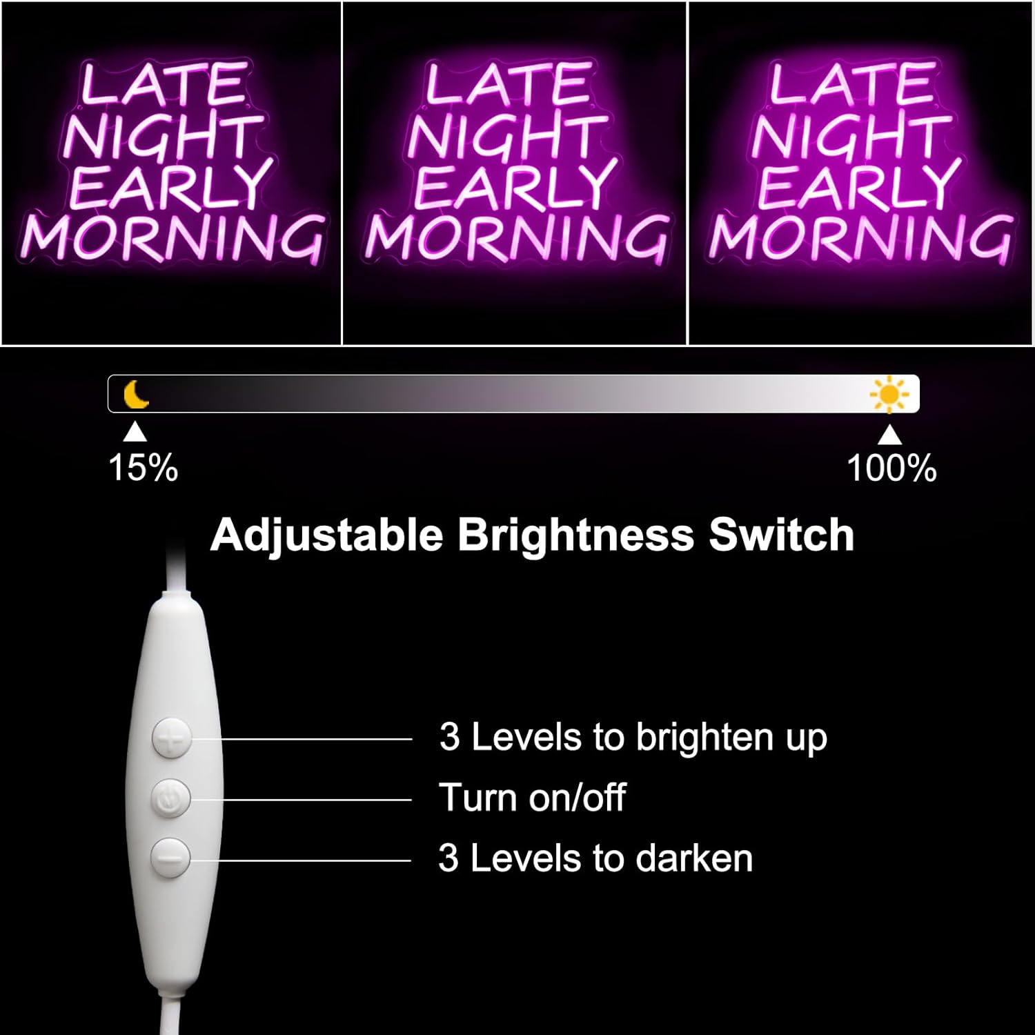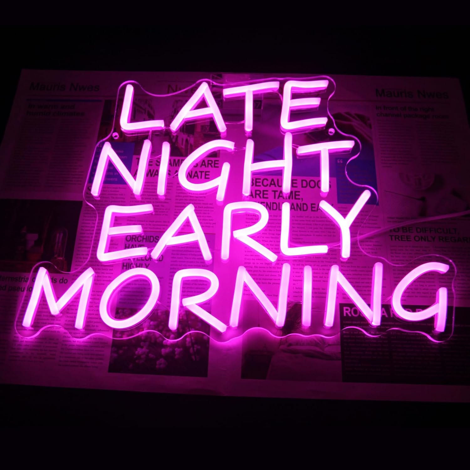 - 【Pink Letter Neon Sign】Late night early morning neon sign can help you relax and enjoy the beautiful atmosphere of the bar/party. The pink LED light words sign can immerse the mood in a wonderful night. Drink together, dance together, and experience the romance of neon signs together!