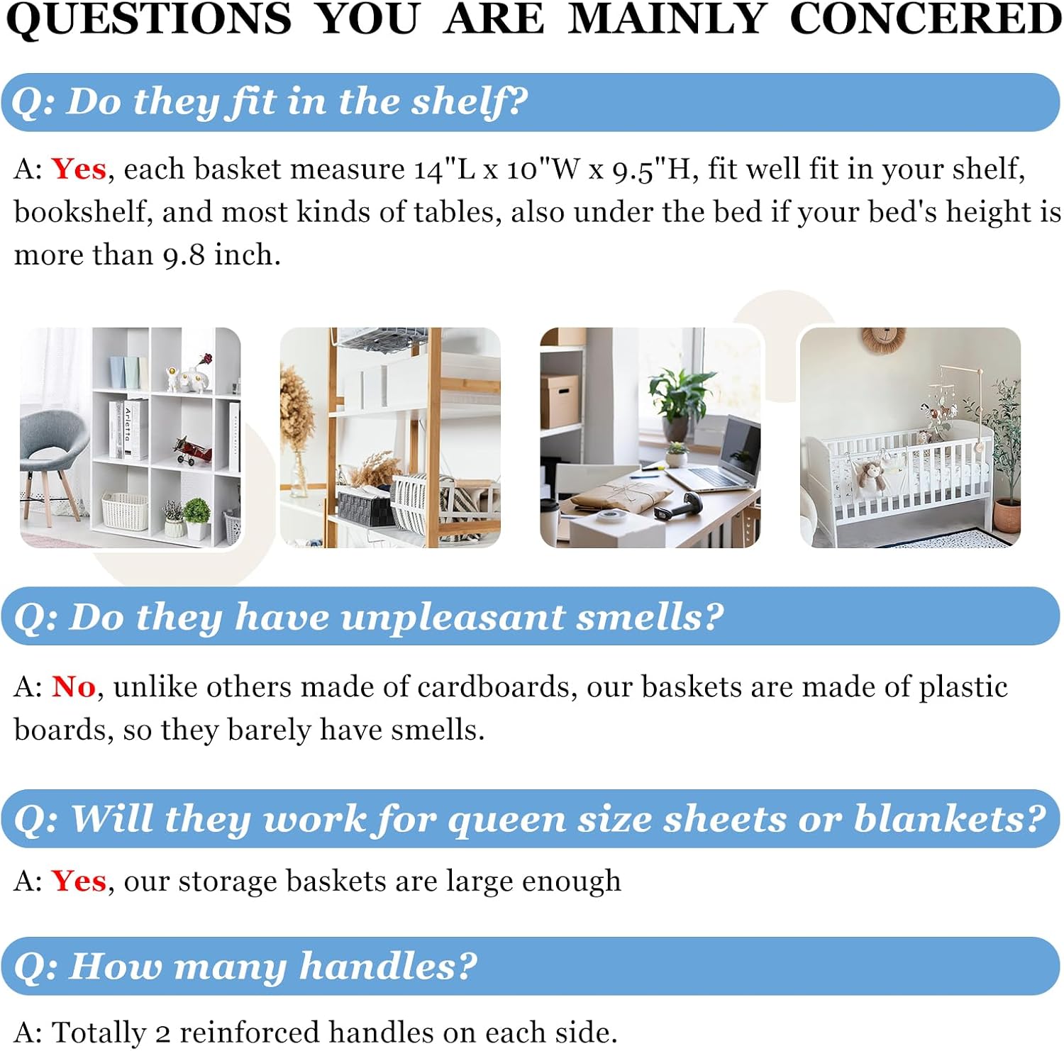 - 【FIT RANGE】 Comes with 4 pack for better value, these cloth storage bins could meet all your family storage needs, also for college dorm, RV, school, baby nursery. Measuring 14” (L) x 10” (W) x 9.5” (H), they could work as storage baskets for shelves, closet storage bins, shelf bins, under bed storage bins, or for changing tables.