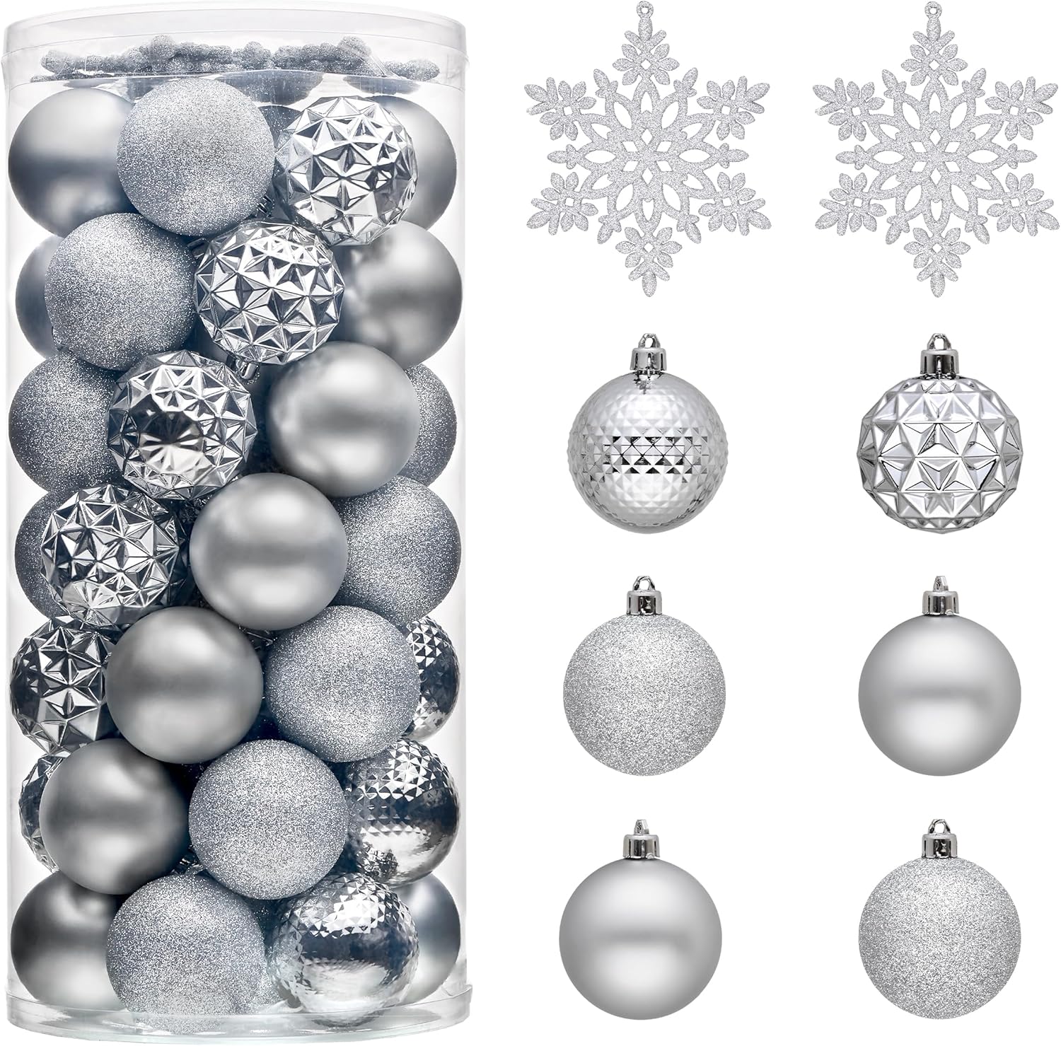 Valery Madelyn Christmas Tree Decorations Ornament Set for Fall Halloween, 50ct 2.36 Inches Silver Shatterproof Christmas Ball Ornaments Hanging Xmas Holiday Party Decor