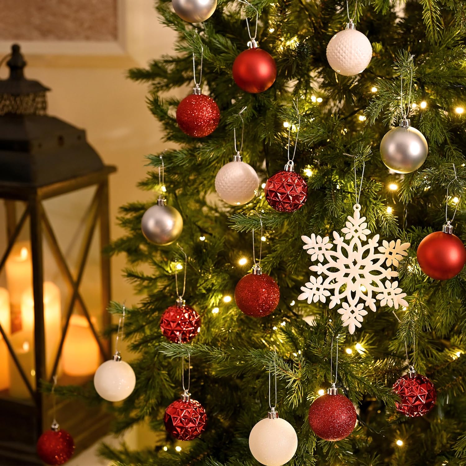 - 【Package and Size】This ornament ball set include 50pcs Christmas ornaments measuring 2.36 inches in diameter, featuring seamless connections for a polished look