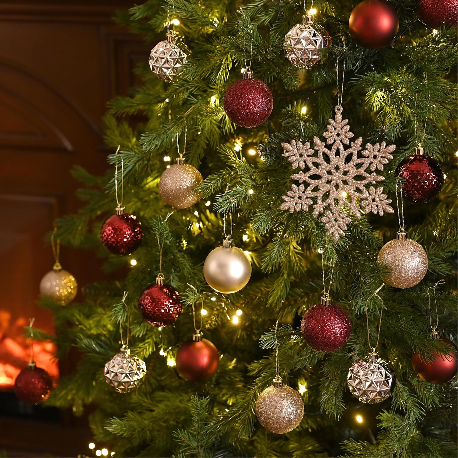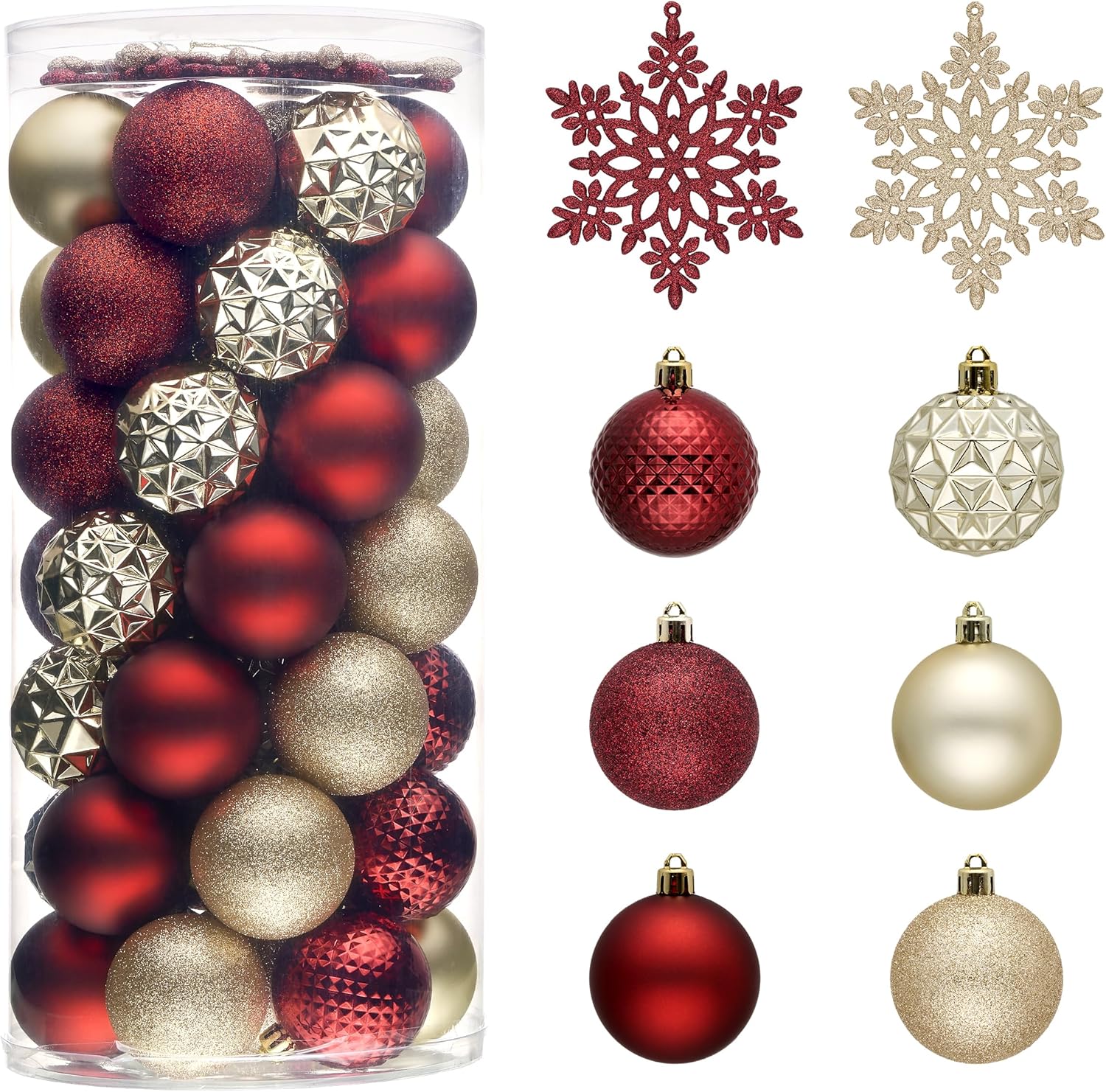 - 【Package and Size】This ornament ball set include 50pcs Christmas ornaments measuring 2.36 inches in diameter, featuring seamless connections for a polished look