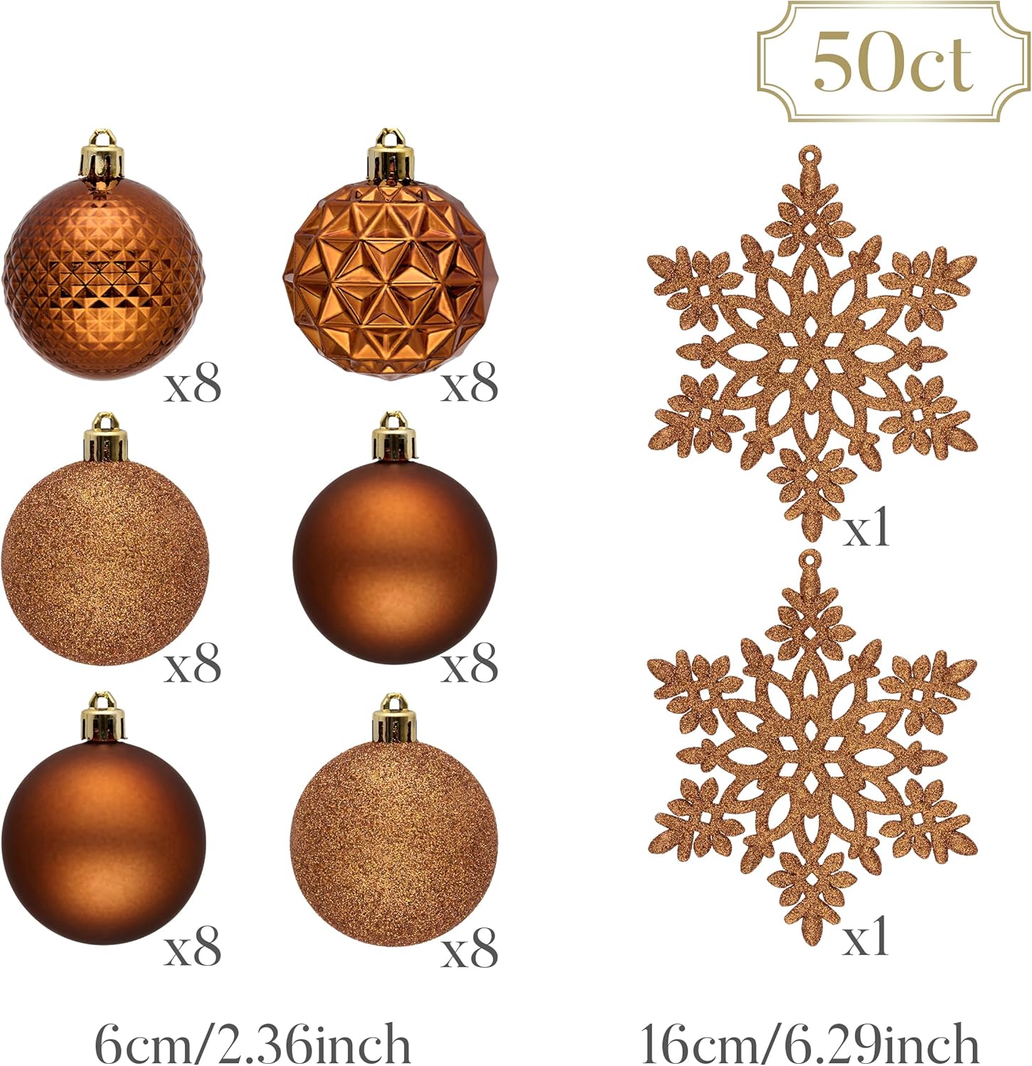 Valery Madelyn Christmas Tree Decorations Ornament Set for Fall Halloween, 50ct 2.36 Inches Bronze Copper Brown Shatterproof Christmas Ball Ornaments Hanging Xmas Holiday Party Decor