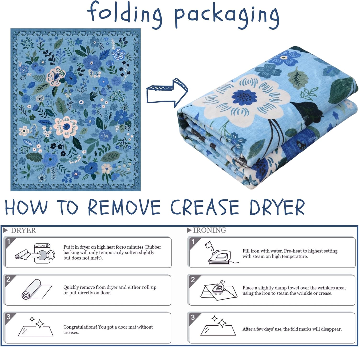 Door Mat Indoor Entrance 2x3 Rug Machine Washable Boho Floral Small Area Rug Non-Slip Low Pile Throw Rugs for Entryway, Kitchen, Front Door Indoor Entrance, Entry, Kids Room (Blue)