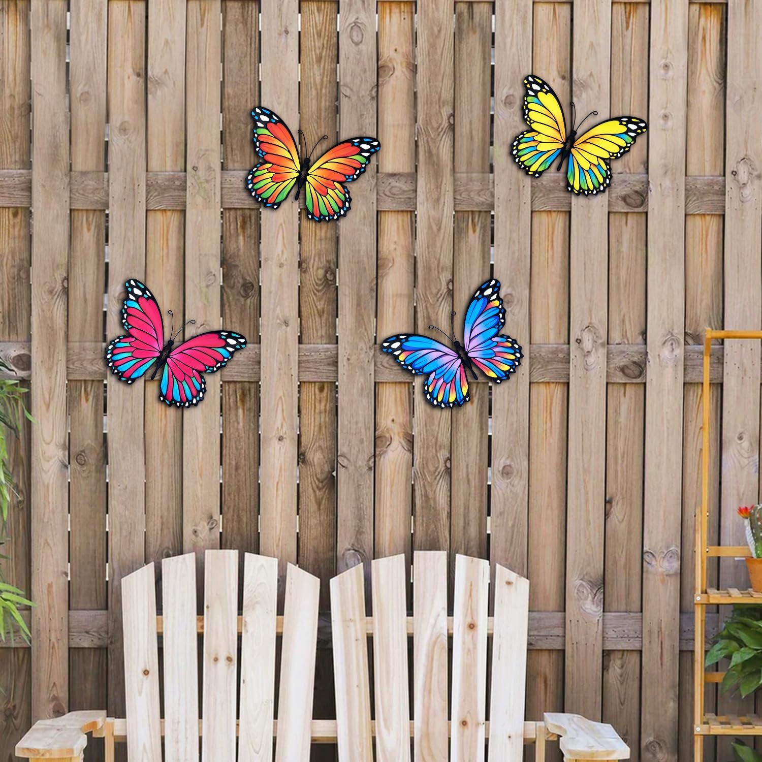 Oraytteo Metal Butterfly Wall Outdoor Decor - 4pcs 9.8inch Hanging Butterflies Wall Art Sculptures for Indoor and Outdoor Fence Patio Yard Home Wall Decorations, Gift for Mom Dad Friends