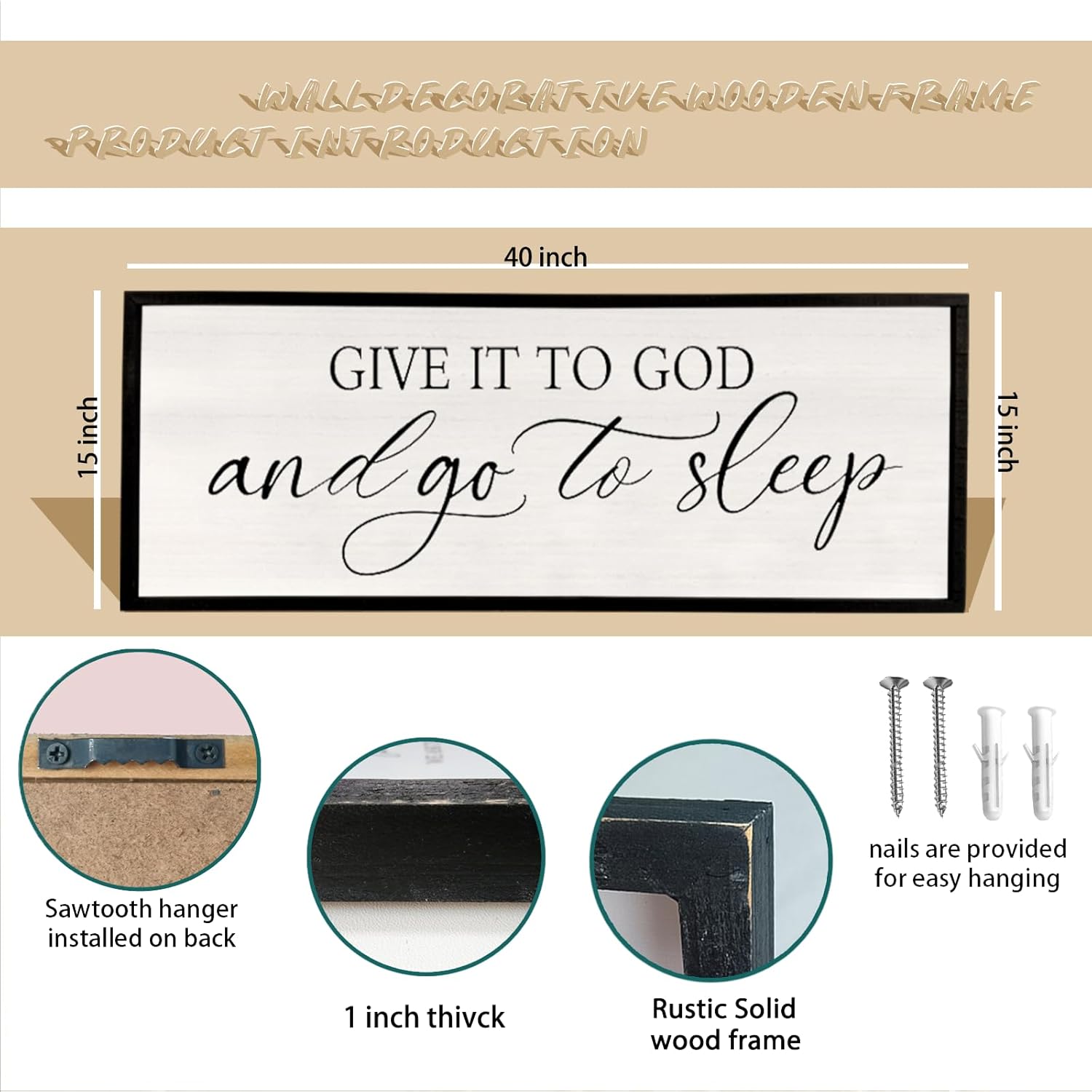 - 【Perfect Craftsmanship】: This decorative piece measures 40 inches x 15 inches x 1 inch and weighs 2.9 pounds. The frame is hand-dyed and the font is UV printed. The color is clear and the introduction is beautiful.