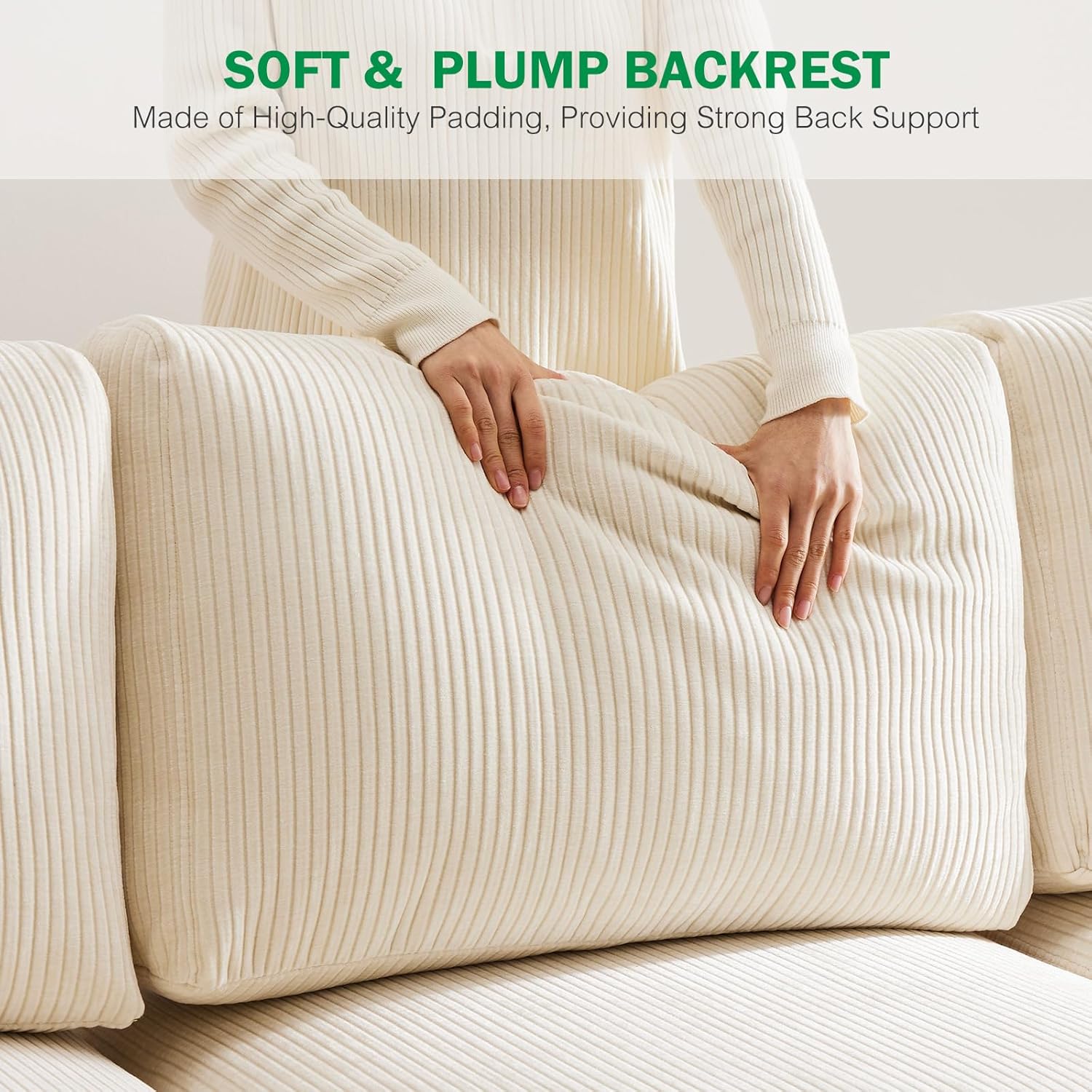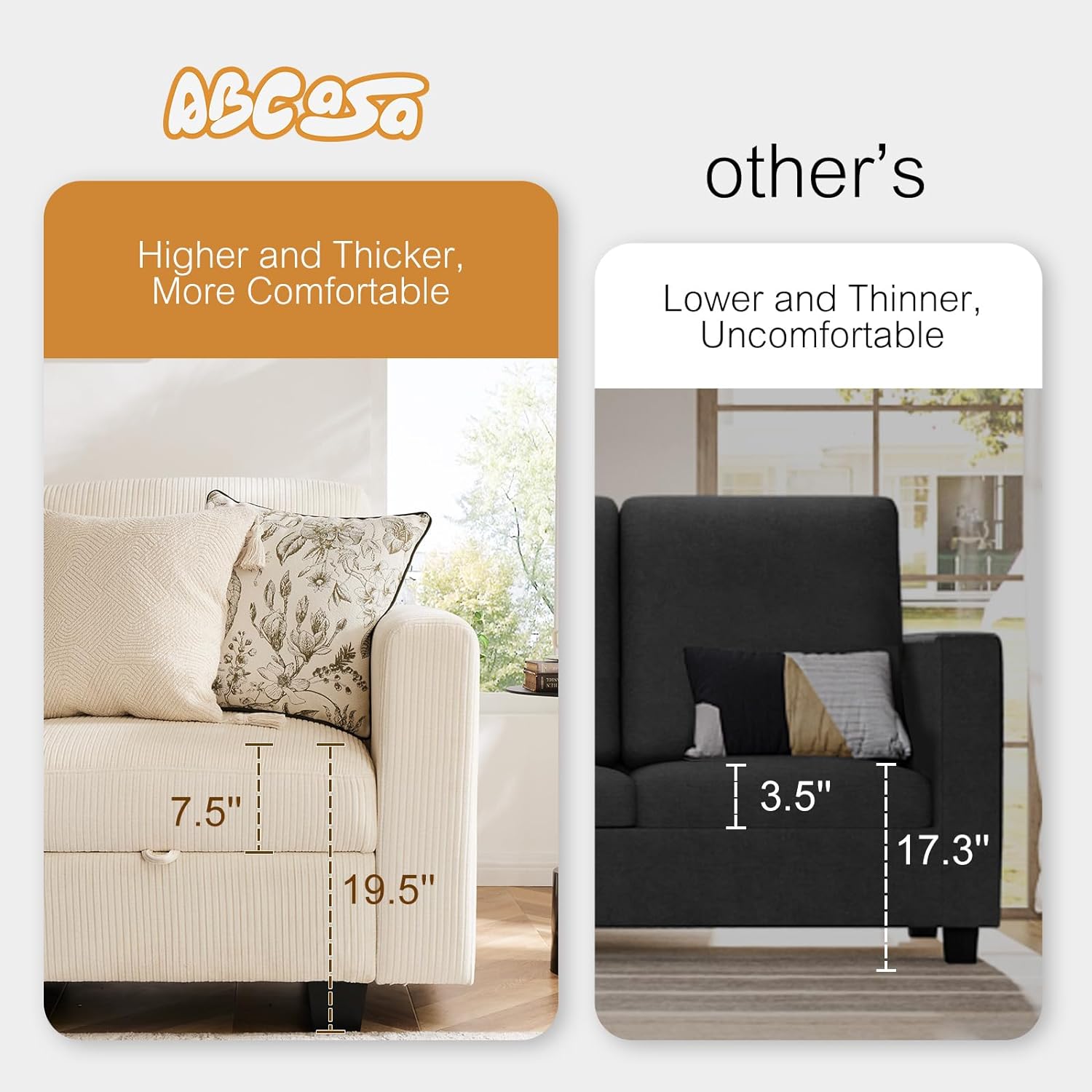 38.5 Oversized Accent Chair with Storage Ivory Corduroy Set of 2, Single Modern Accent Sofa with Arms Chair for Apartment Living Room (21" Deep Seat)