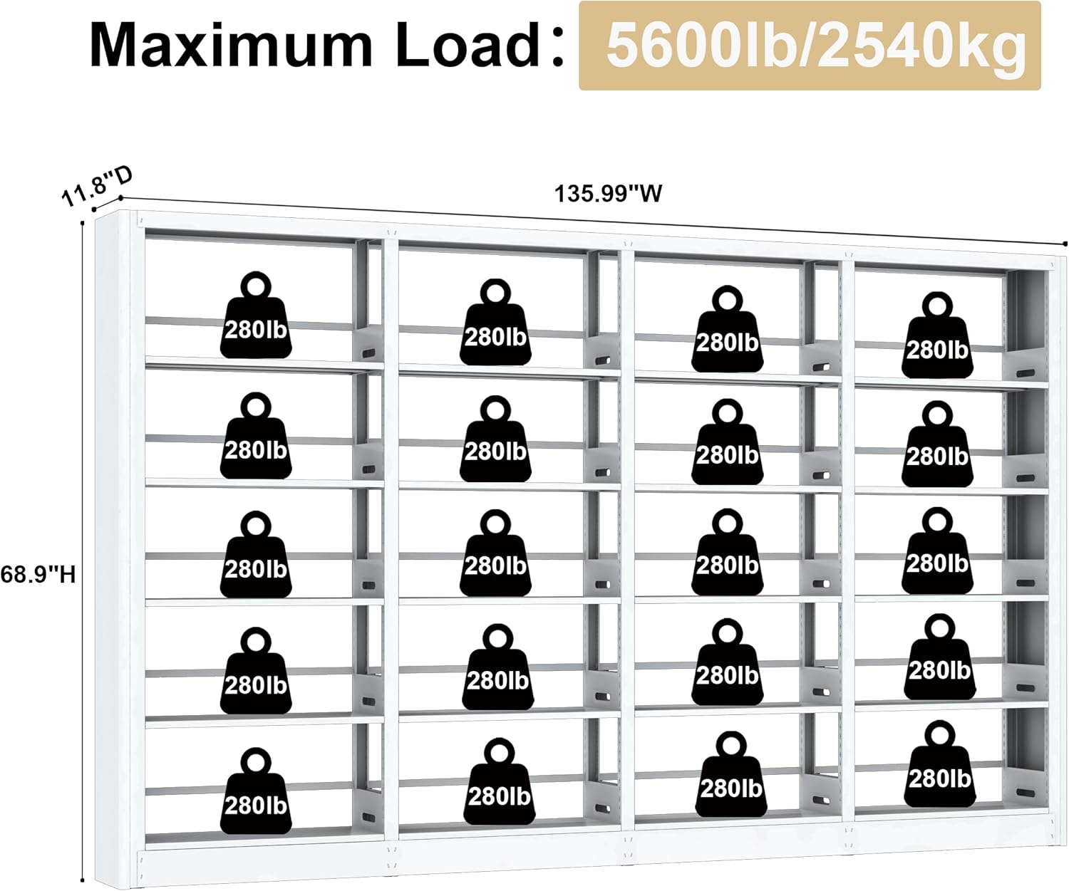 - 【Large Load-bearing Steel Bookshelf】Metal bookshelf Features:Heavy load bearing,Stable,Sturdy,Non-pollution,Long service life.Move multiple installation is not easy to damage.Our bookshelf is made of cold rolled steel and can hold up to 280 pounds per shelf. The ironck bookshelves are better load-bearing than wooden bookshelves and stronger than wooden bookshelves.