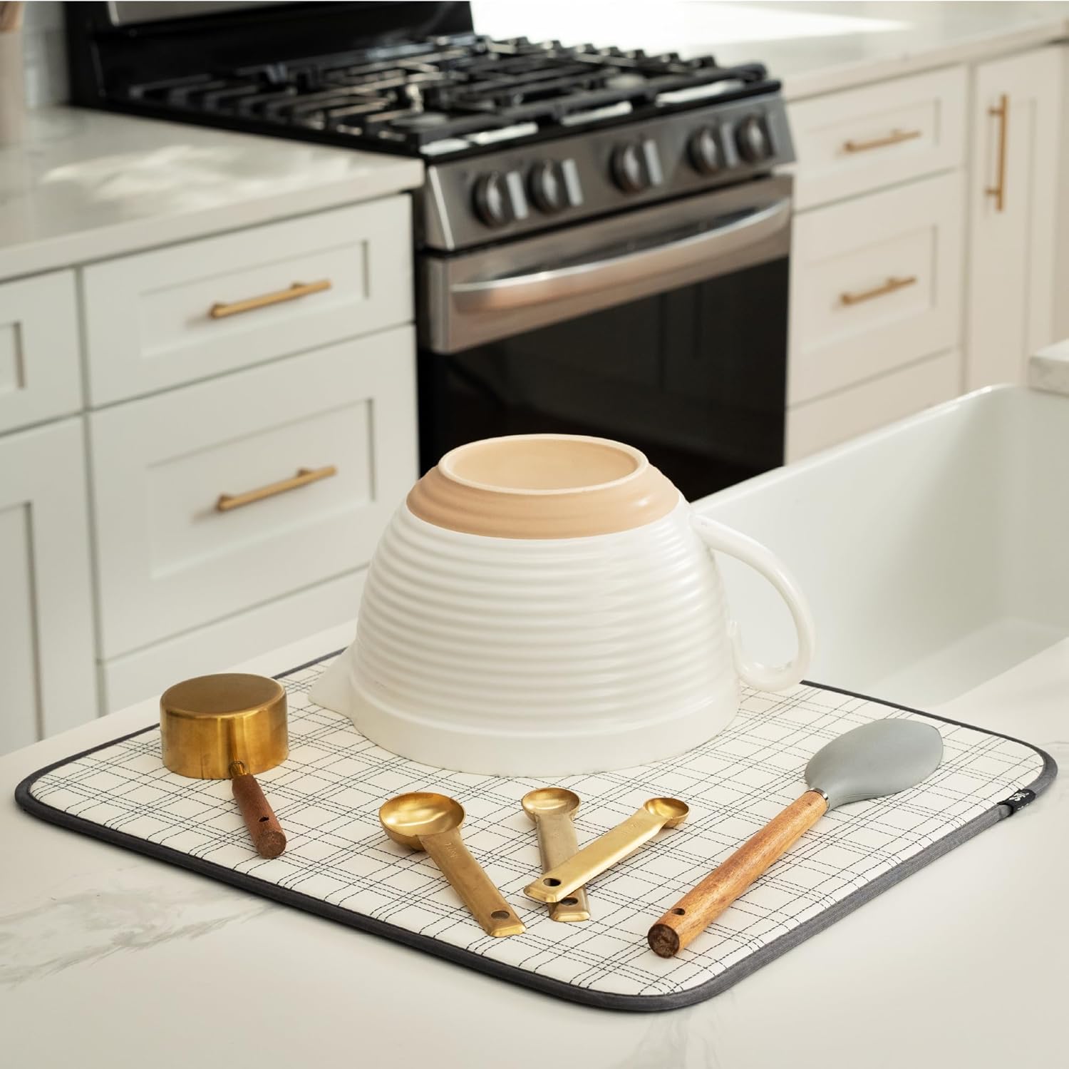 S&T INC. Dish Drying Mat, 16” x 18”, Absorbent Microfiber Kitchen Counter Mat, Dish Drying Pad for Dishes, Utensils, Pots and Pans, Large, Stitched Plaid