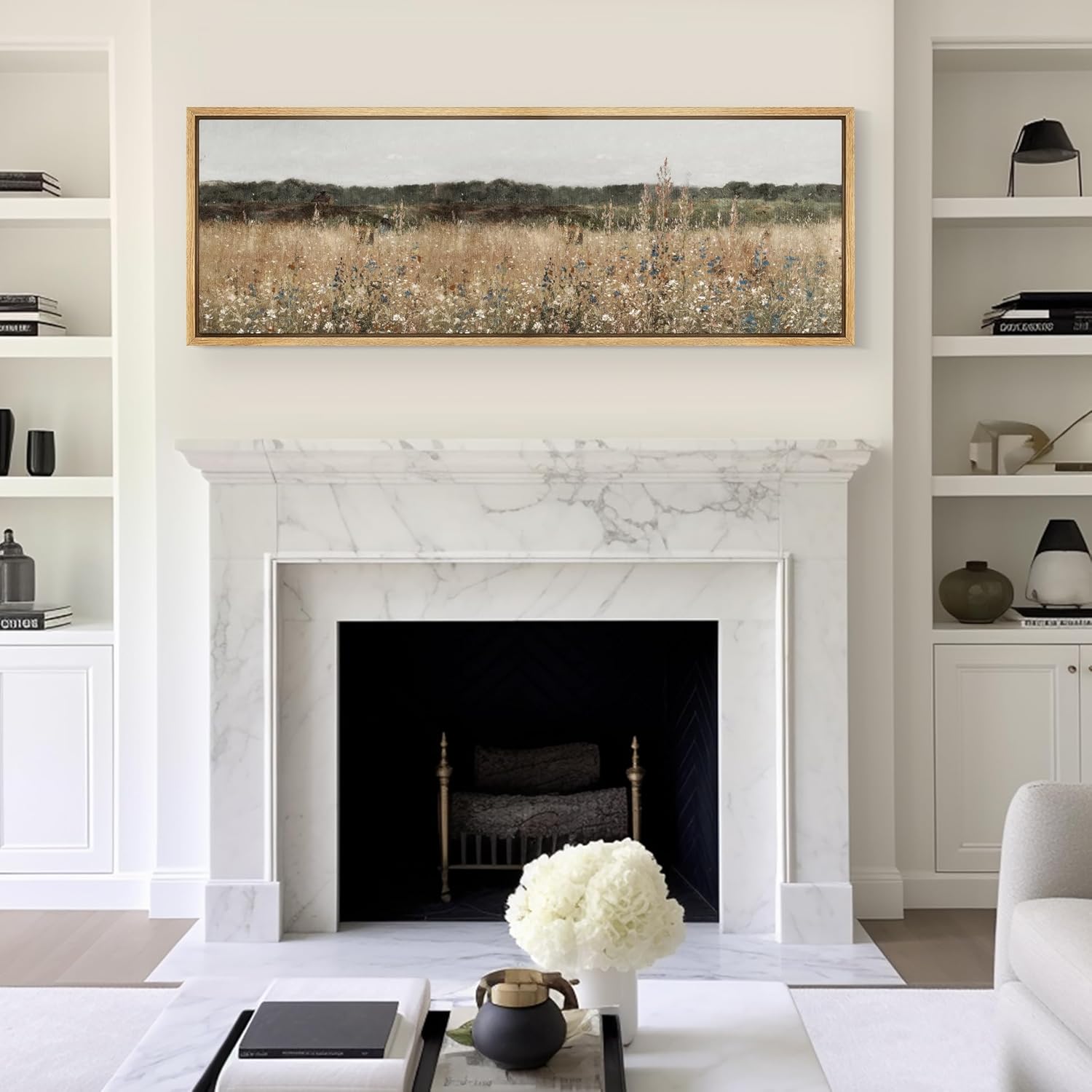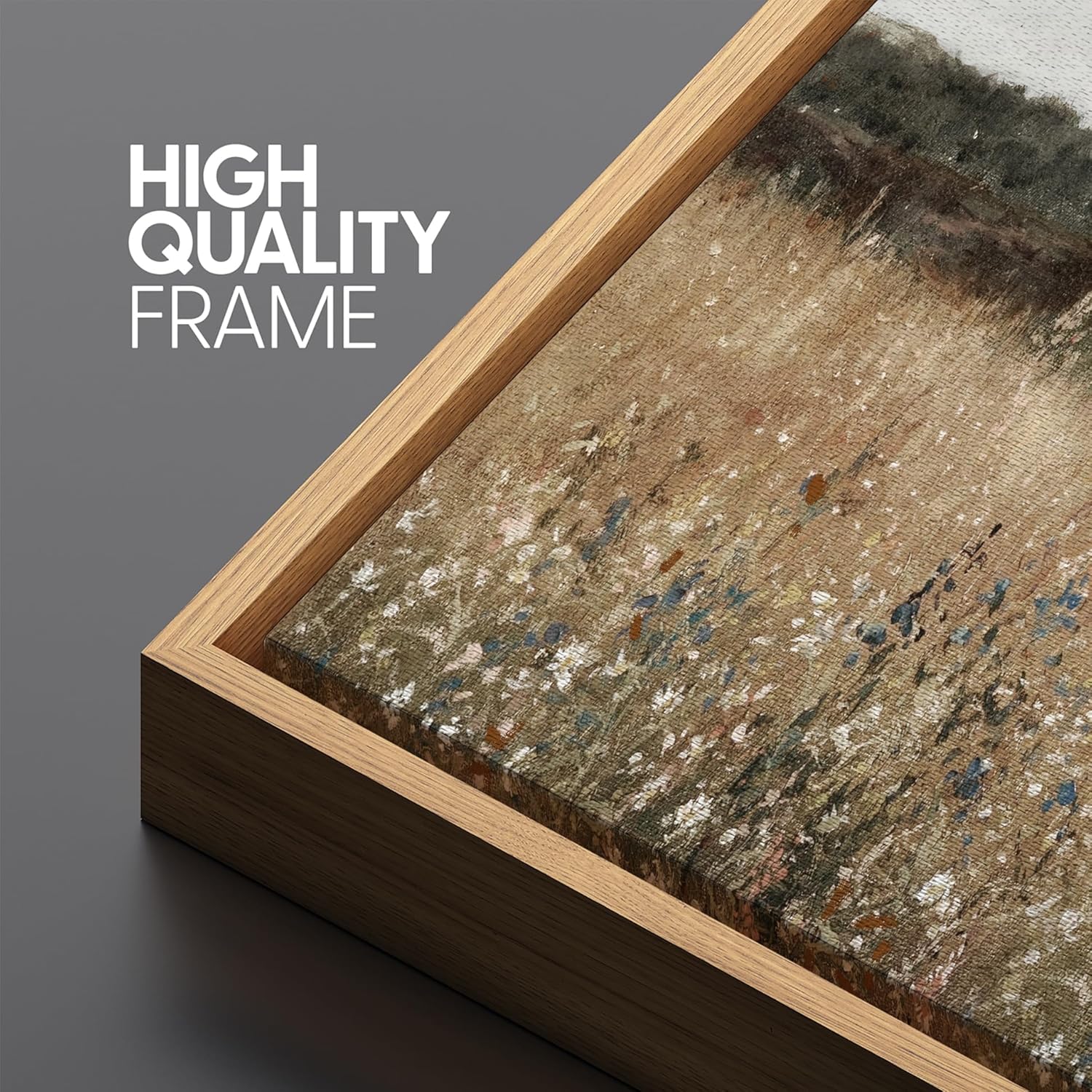 MUDECOR Large Framed Canvas Print Wall Art Misty Morning Meadow with Wildflowers Antique Retro Fine Art Illustrations Decorative Colorful for Bedroom - 60"x20"
